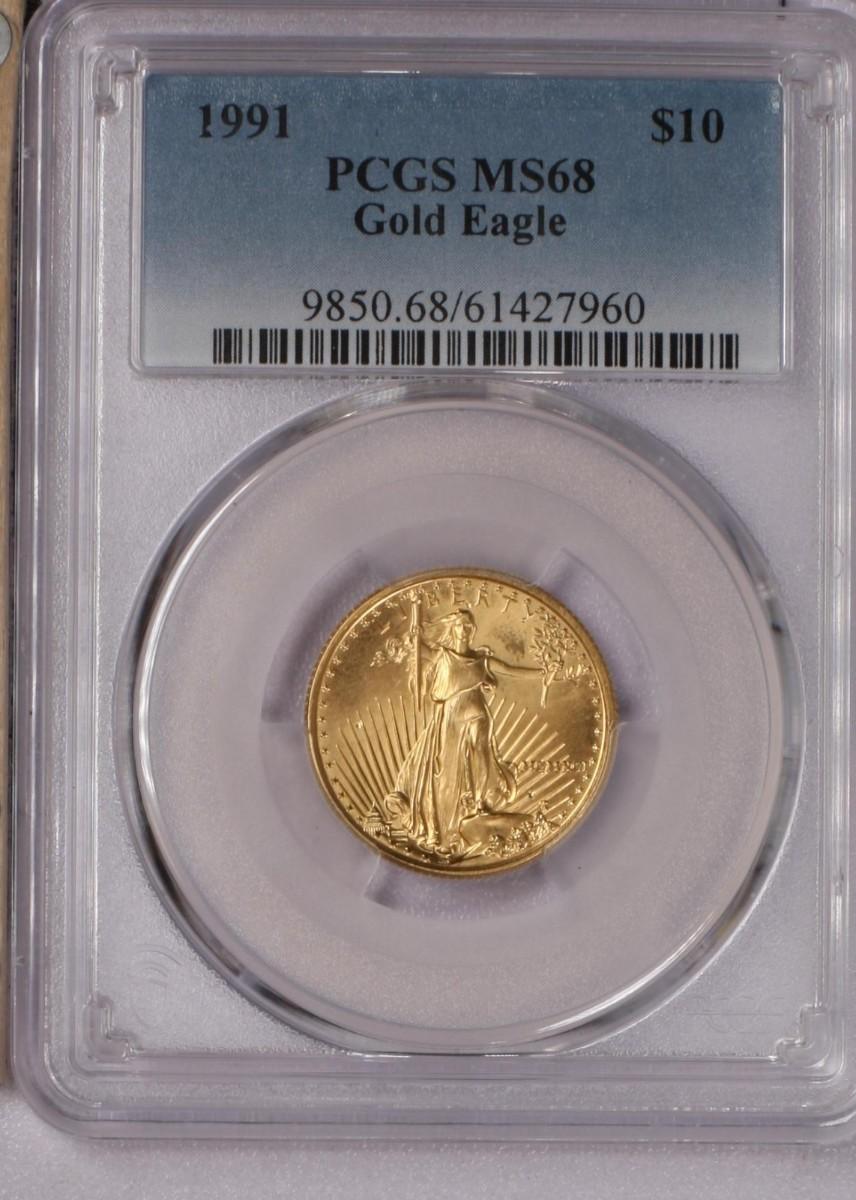 1991 Gold Eagle 1/4 oz. $10 PCGS MS68. Low mintage, rare date.