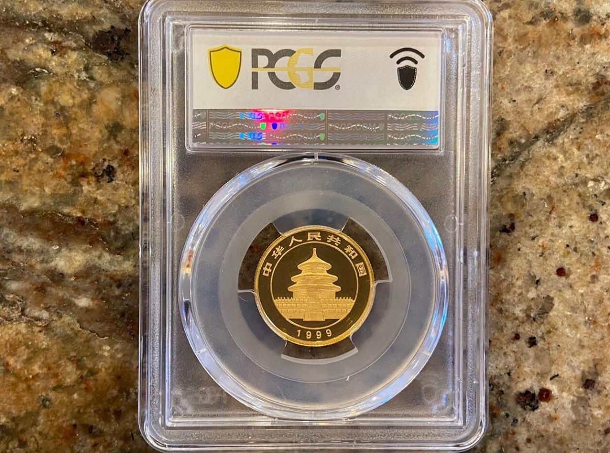 This 1999 1/4 oz Chinese Gold Panda Coin is a Brilliant Uncirculated (MS69) example, graded by PCGS and struck in .999 fine gold by the Chinese Mint. Featuring the Large Date No Serif design, this 25 Yuan coin is a beautiful collectible that combines elegance, rarity, and investment potential. Sold as pictured, this certified coin is ideal for collectors seeking a high-grade, historically significant addition to their collection.