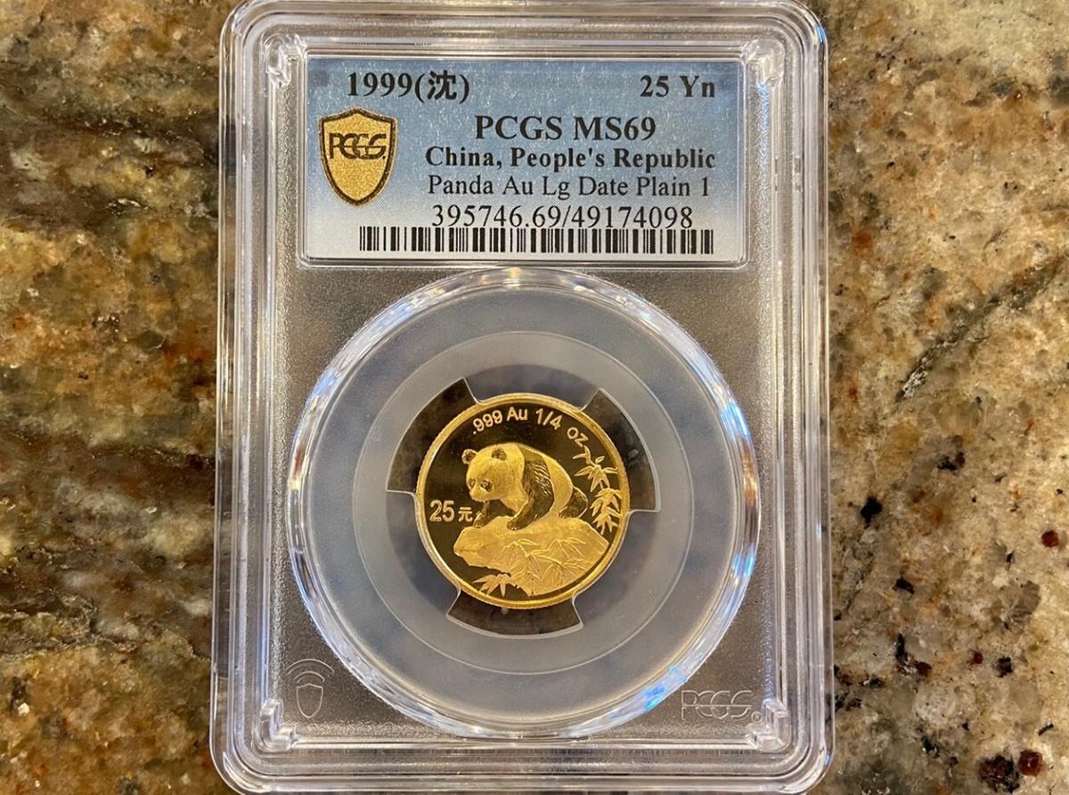 1999 1/4 Oz 25 Yuan China Gold Panda Coin Large Date No Serif MS 69