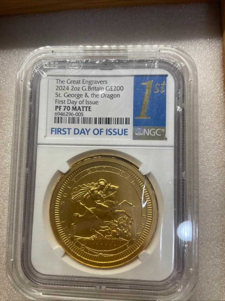 2024 UK CharlesIII gold PF70 Matte FDI 2oz St George&Dragon, Mint case and COA