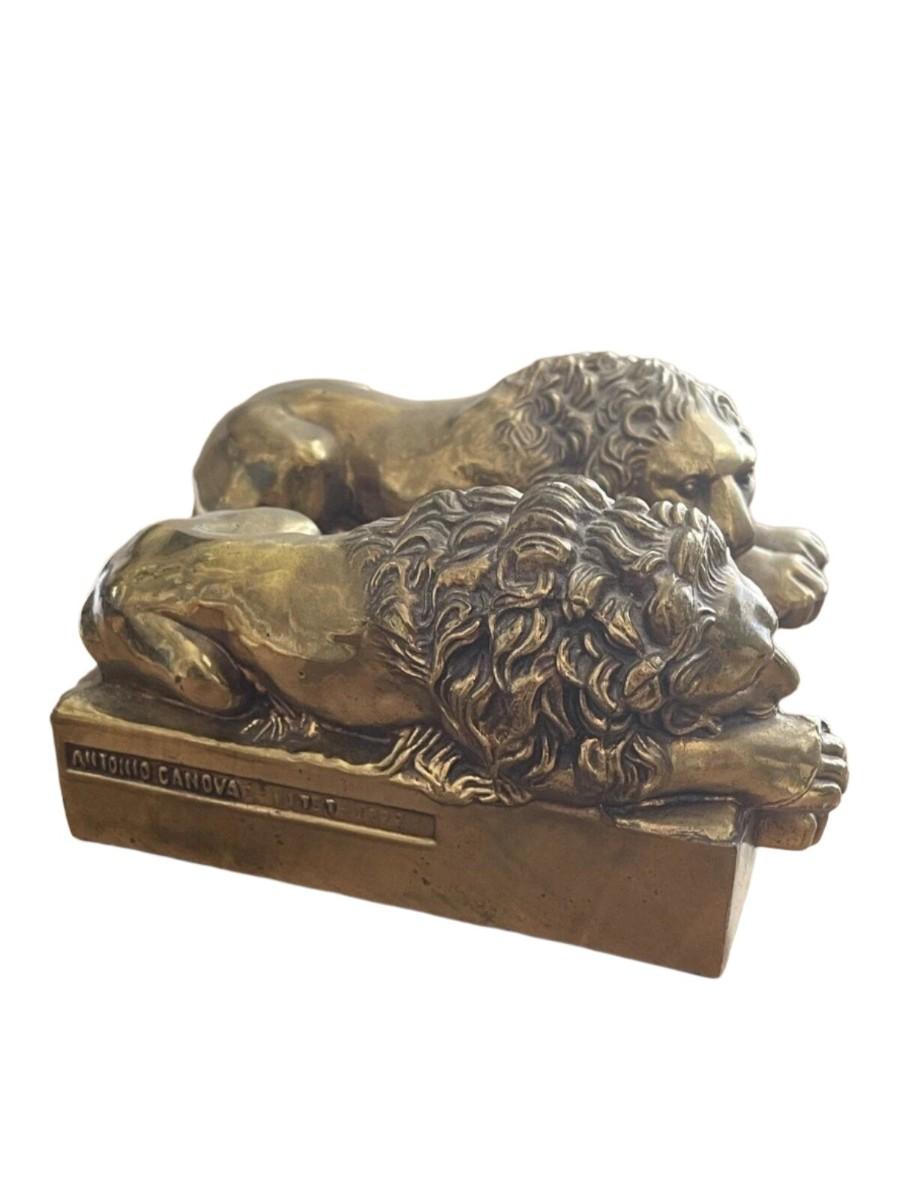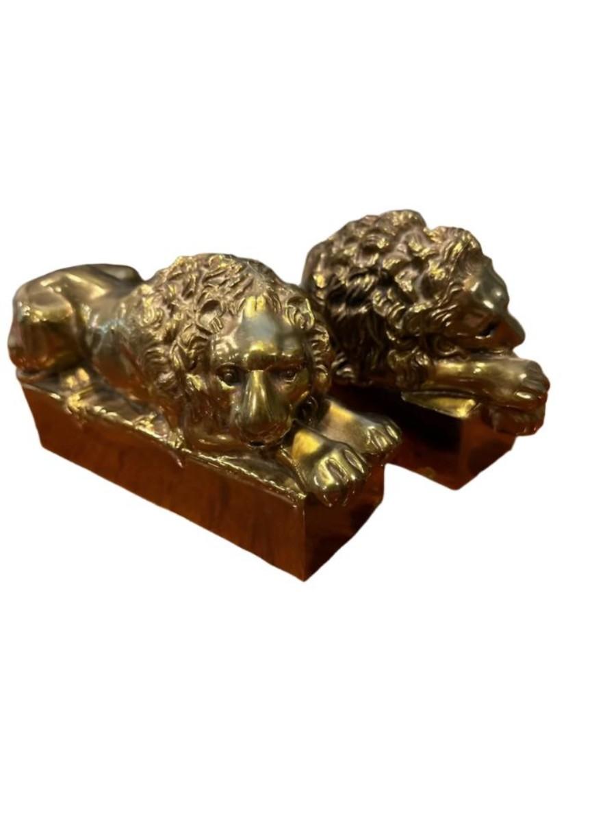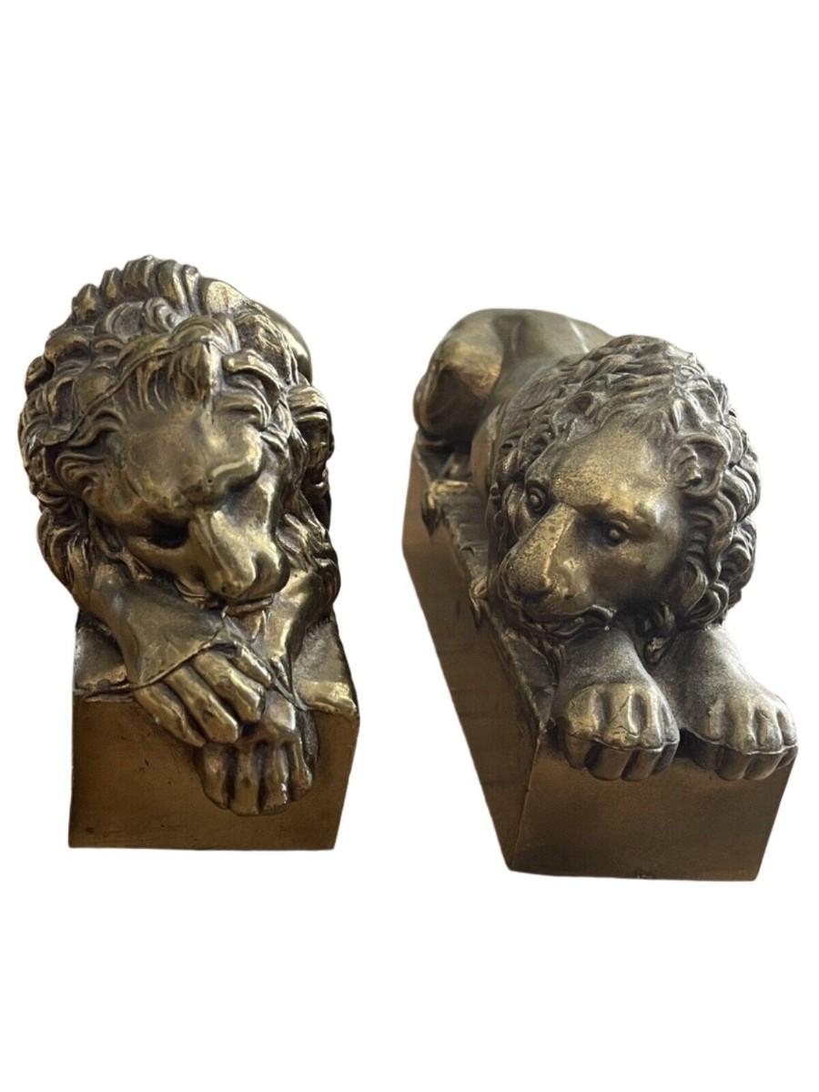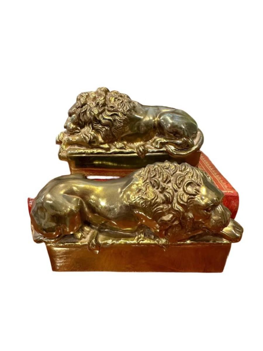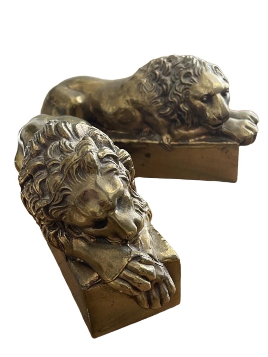 A Pair Of Cast Brass Lion Bookends After Antonio Canova (1757-1822)