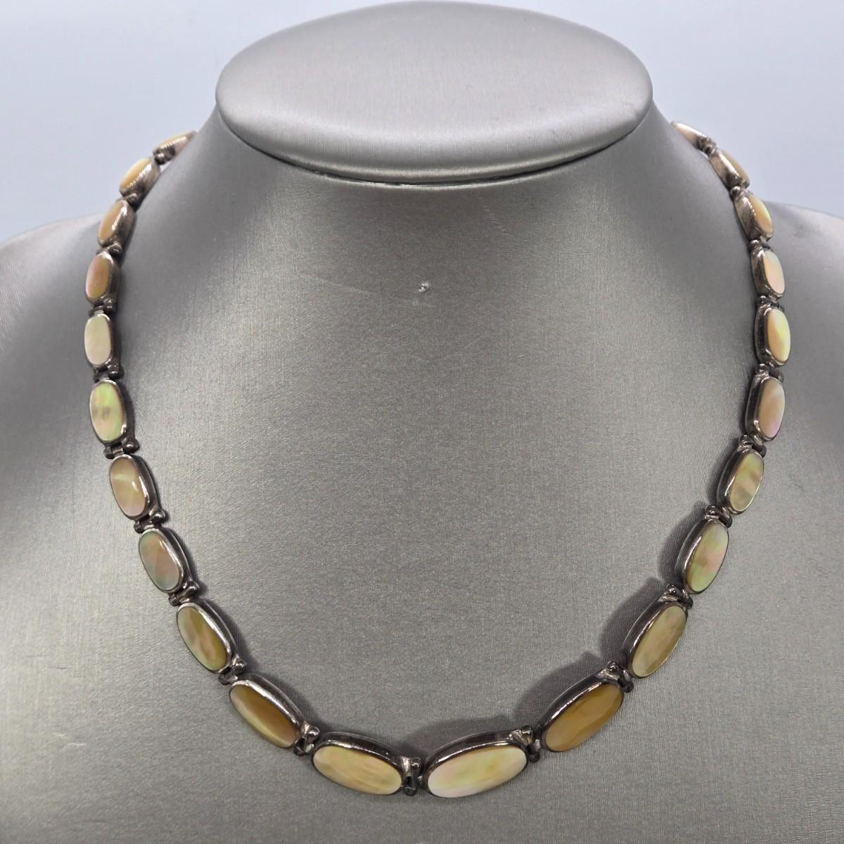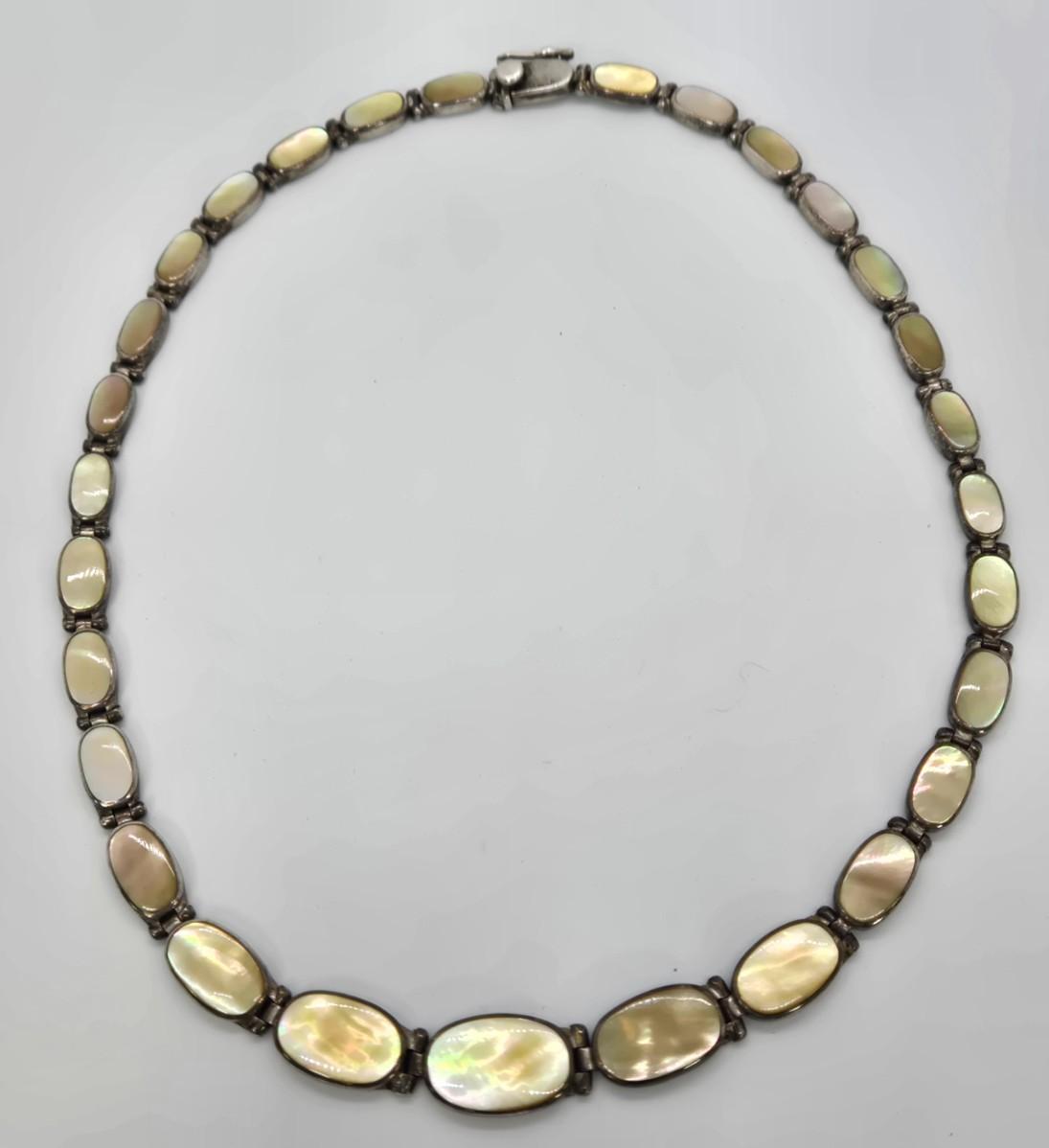 Beautiful Vintage Mother of Pearl Set in 950 Silver Choker Necklace / 49.5 gr.