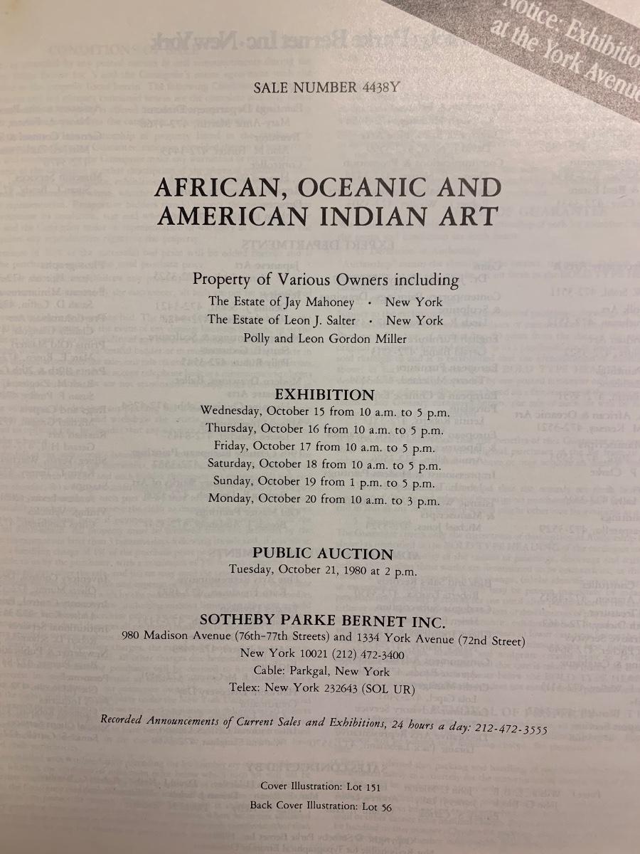 African, Oceanic & American Indian Art Sotheby’s Auction Catalog Oct. 21, 1980