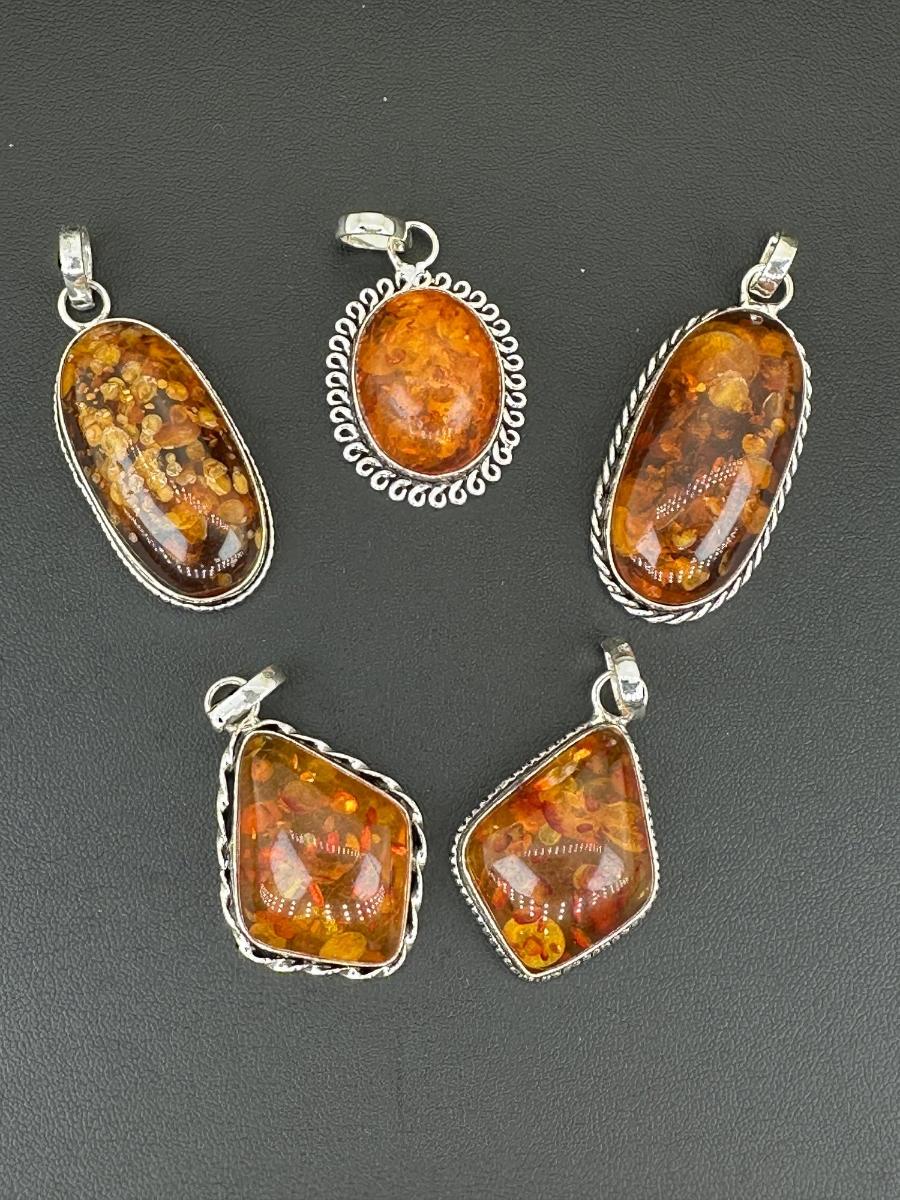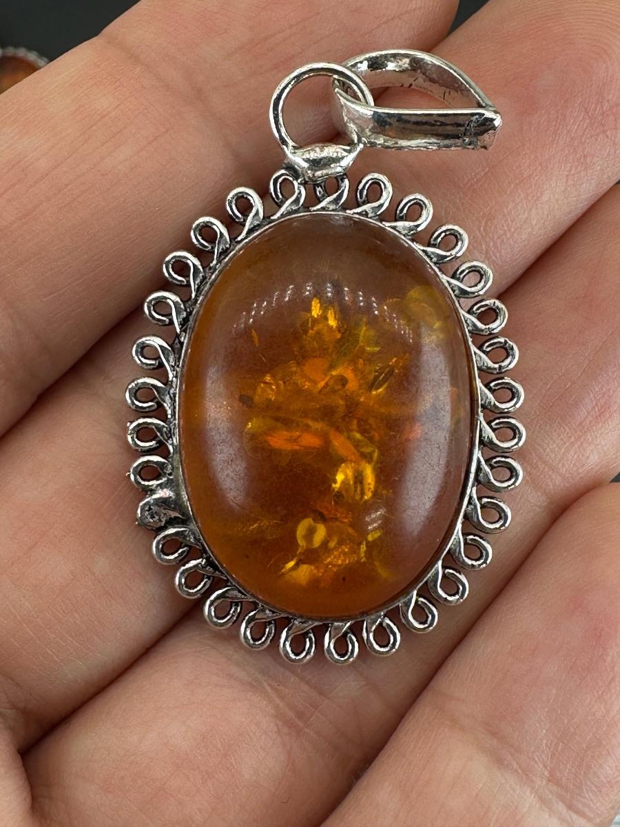 1. Amber Pendant 925 Sterling Silver Plated Handmade Gemstone -No chain_x000D_