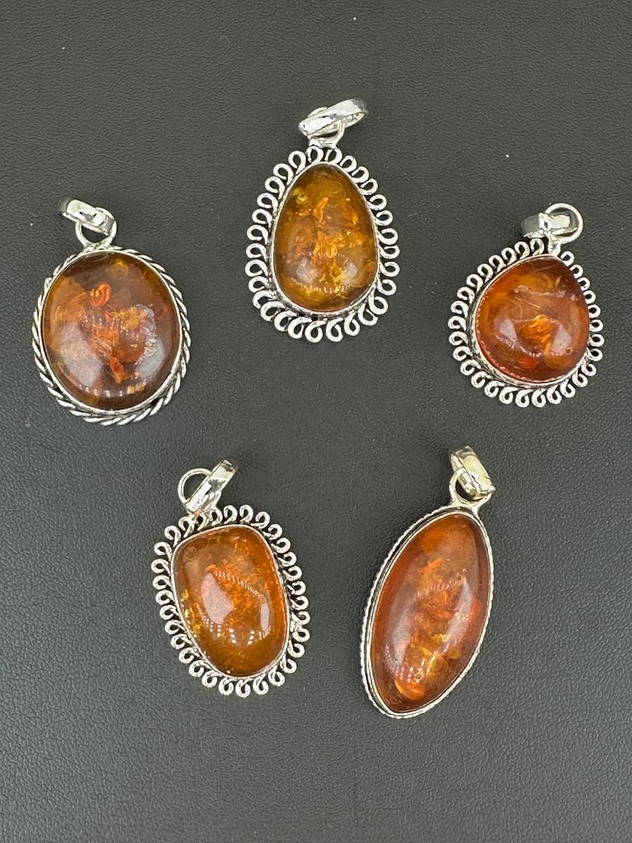 1. Amber Pendant 925 Sterling Silver Plated Handmade Gemstone -No chain_x000D_