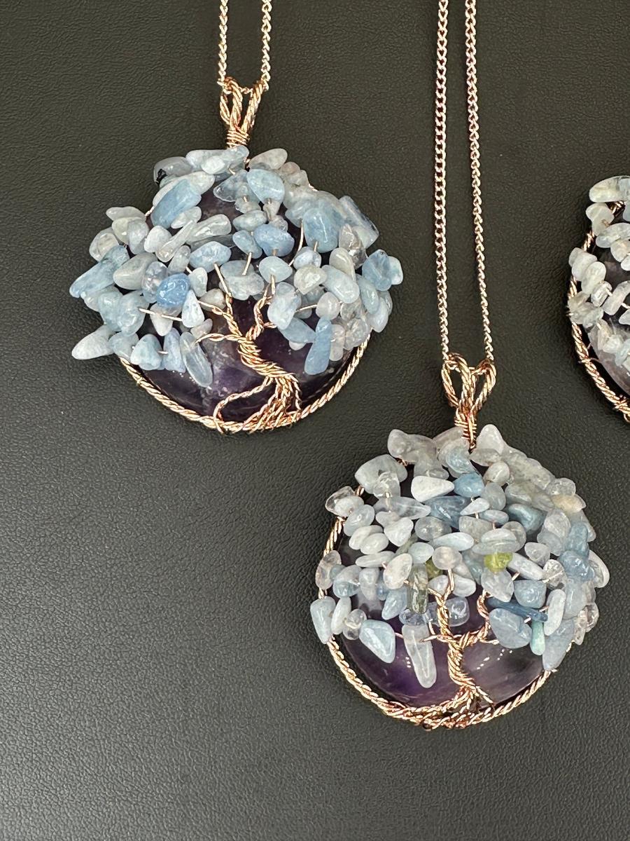Amethyst Gemstone Tree Of Life Necklace Lot