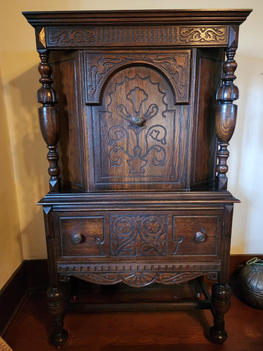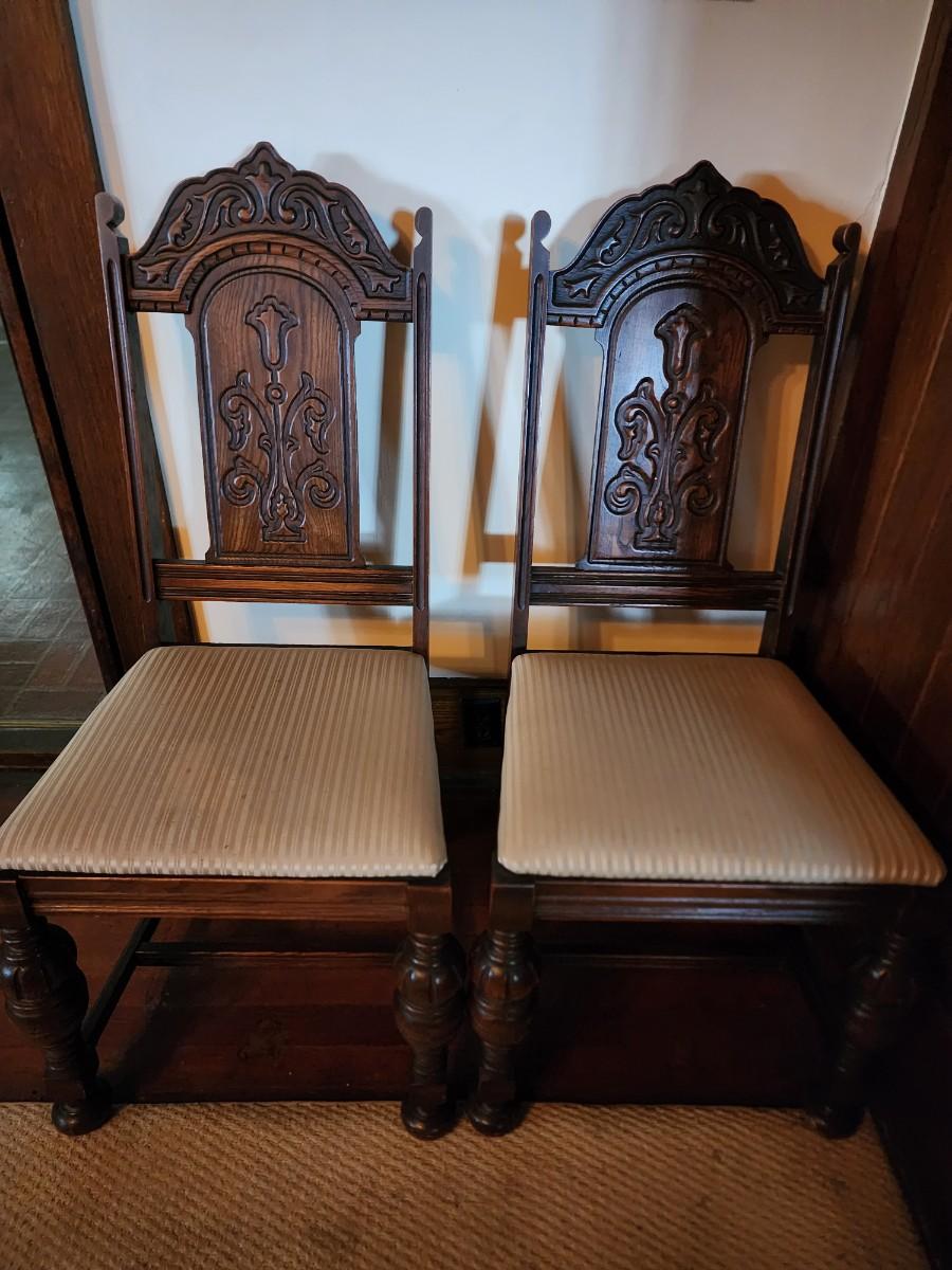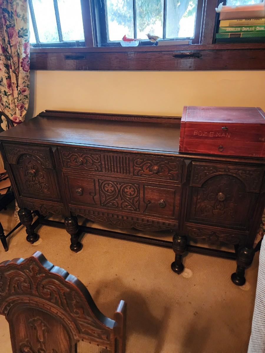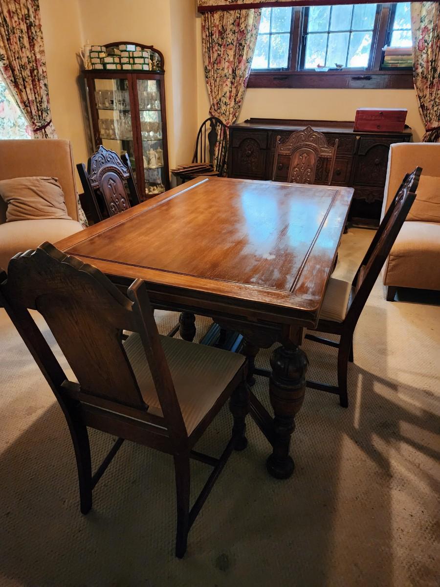In beautiful condition, this dining room set is not just furniture; it's a statement of refined taste and a nod to the sophistication of a bygone era. Elevate your dining experience with the charm and grace of our Antique Jacobean collection ““ where every meal becomes a celebration.