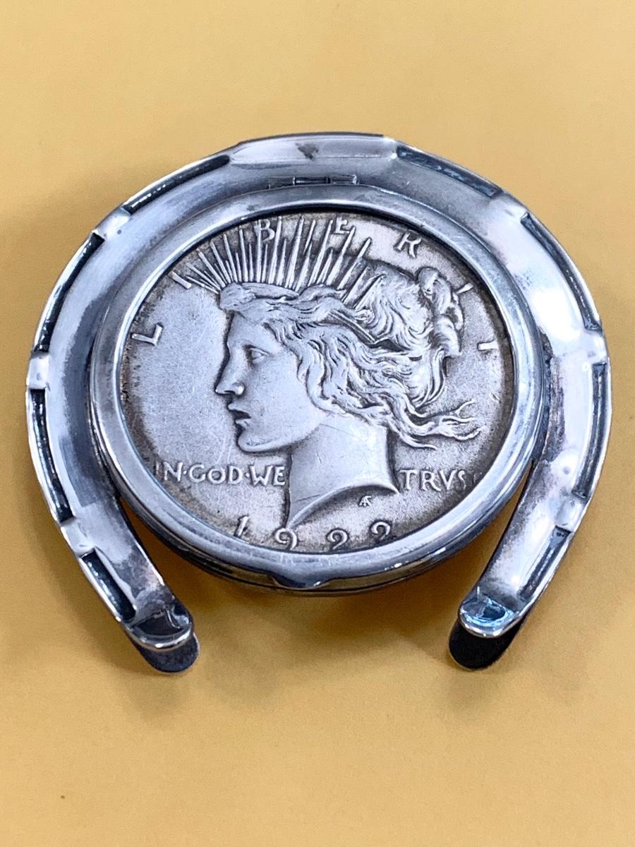 Antique Lucky Horseshoe Silver Peace Dollar Money/ Belt Clip