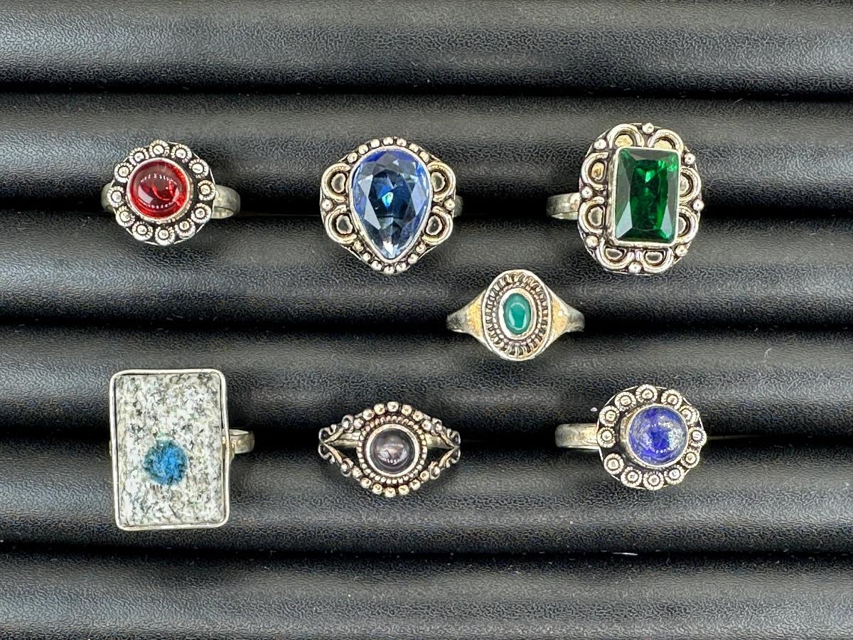1. Assorted 925 Sterling Silver Plated Handmade Gemstone Rings for Women - Sizes 4 to 10_x000D_