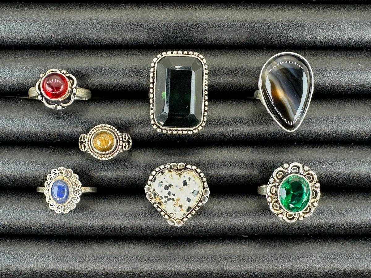 1. Assorted 925 Sterling Silver Plated Handmade Gemstone Rings for Women - Sizes 4 to 10_x000D_