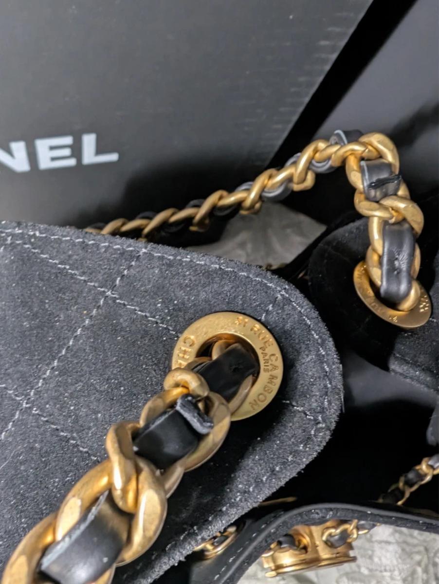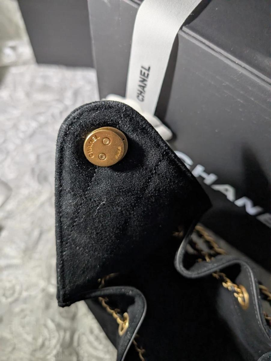Authentic CHANEL 25 Small Hobo Bag Black Suede Aged Gold Hardware - Pristine