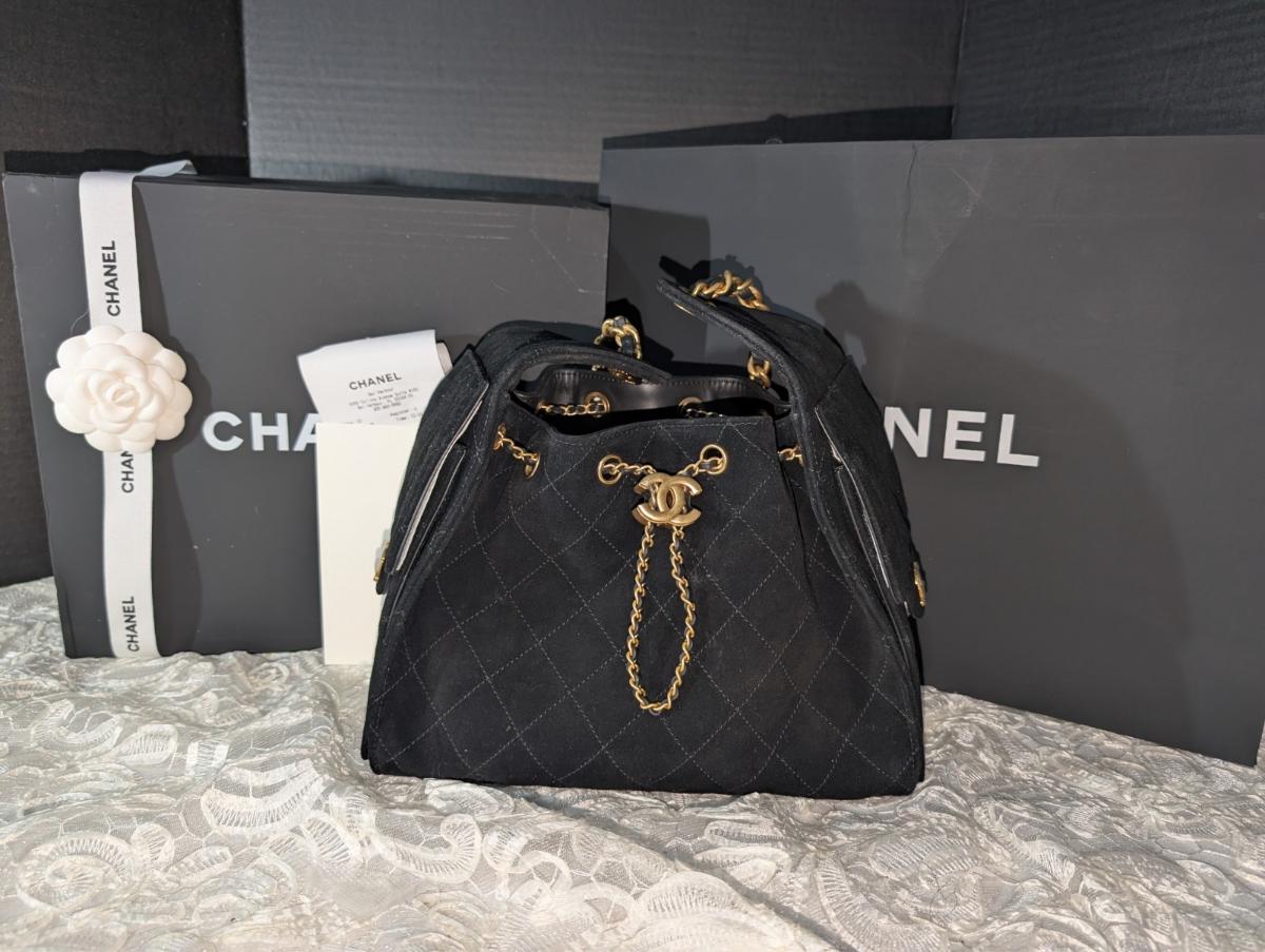 CHANEL 25 Small Hobo in Black Suede Experience the perfect blend of Parisian elegance and effortless "cool" with the Chanel 25 Small Hobo Bag. Unveiled as the sophisticated successor to the Chanel 22, the 25 offers a more structured trapezoid silhouette while maintaining the slouchy, relaxed charm that modern collectors crave. Crafted in sumptuous Black Suede Calfskin with a matte, velvet-like finish, this bag is a tactile masterpiece.