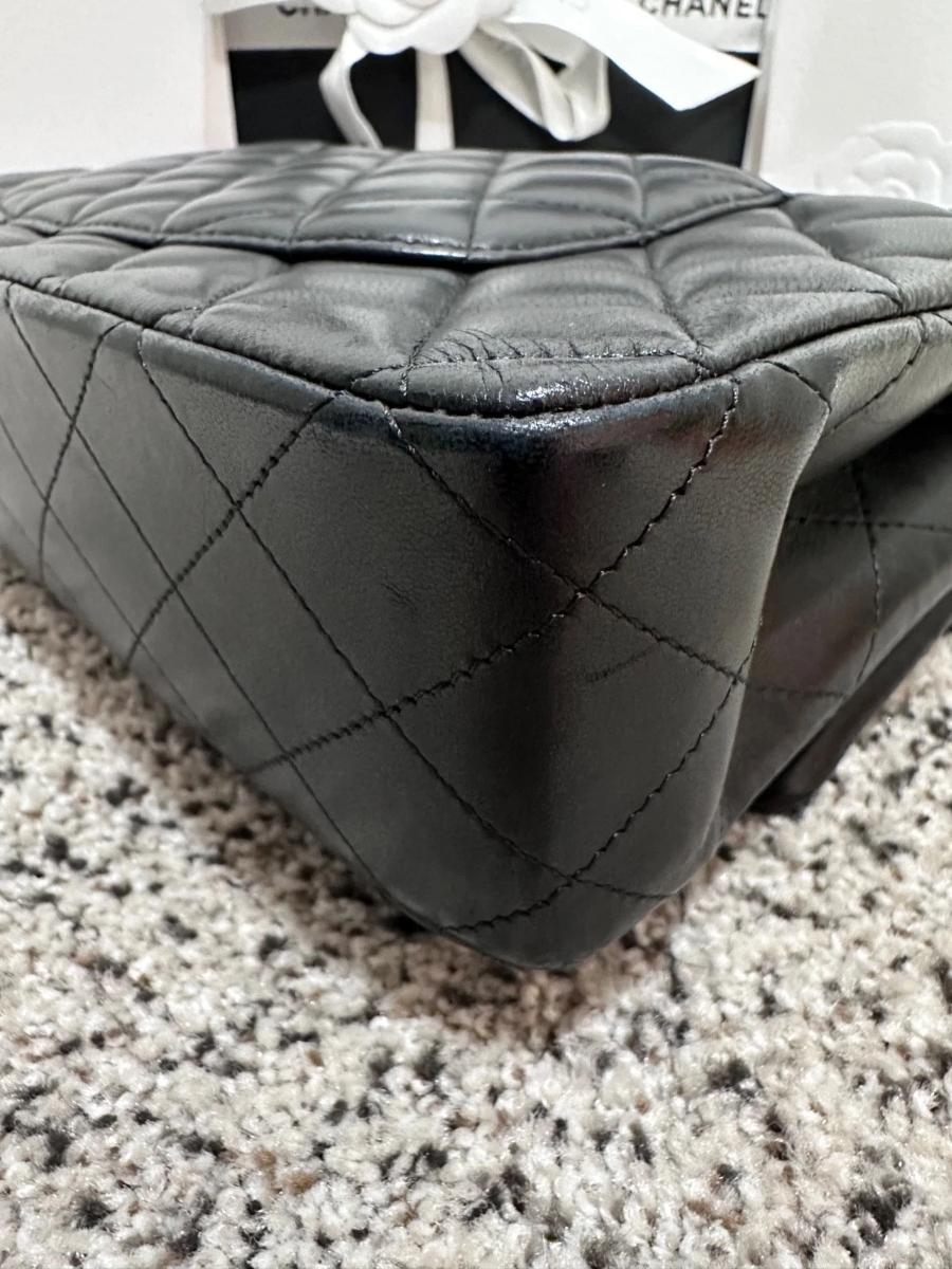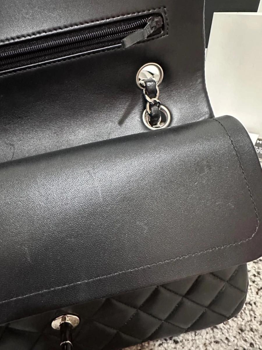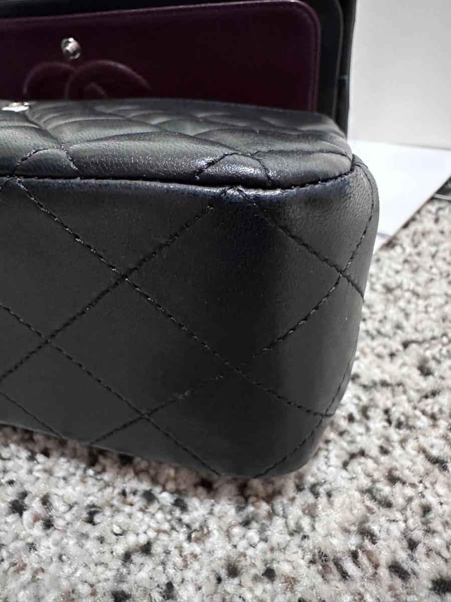 Leather: Excellent. The lambskin retains its original luster and "puffy" quilting. As it is an authentic pre-owned piece, it has been handled with care.