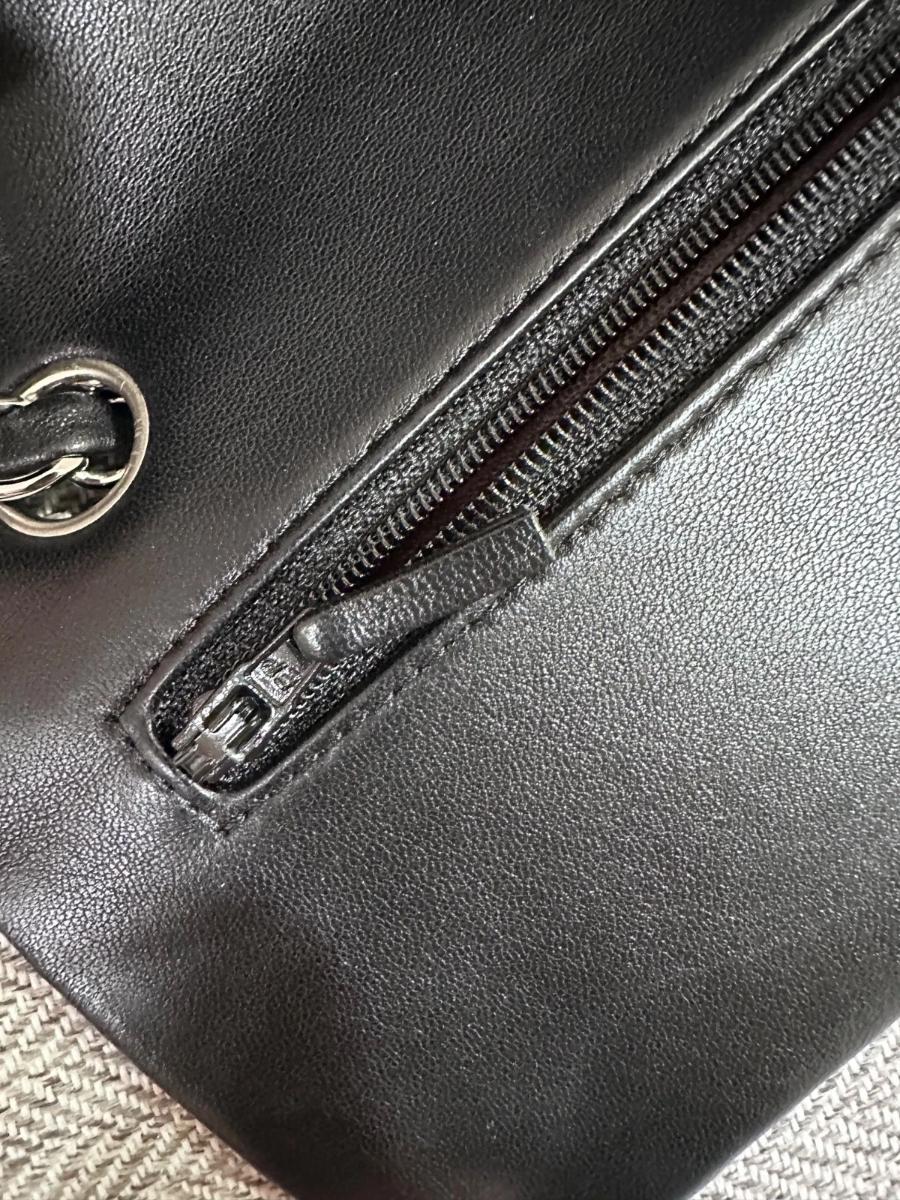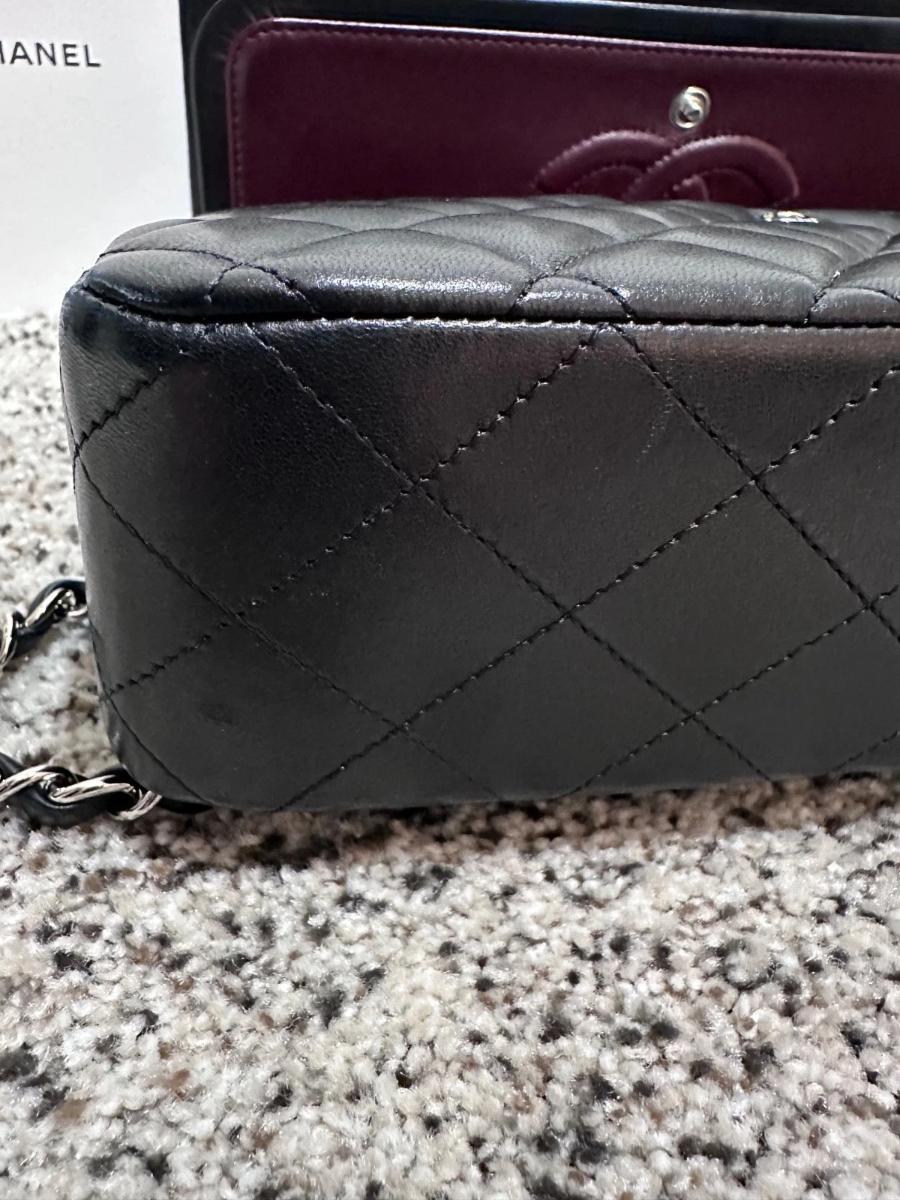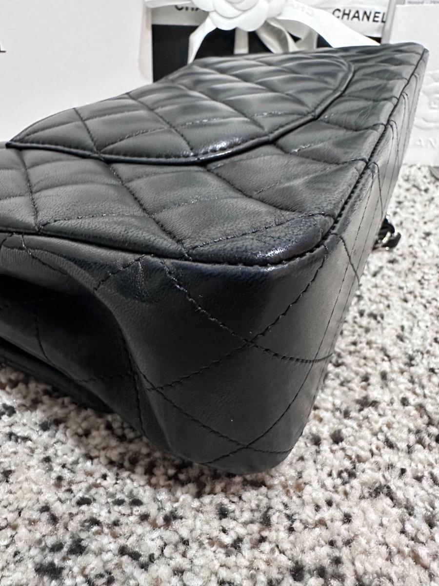 Leather: Excellent. The lambskin retains its original luster and "puffy" quilting. As it is an authentic pre-owned piece, it has been handled with care.