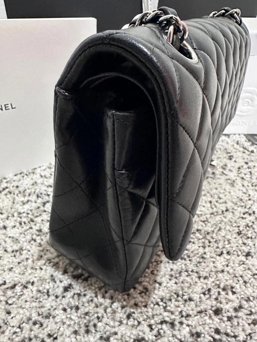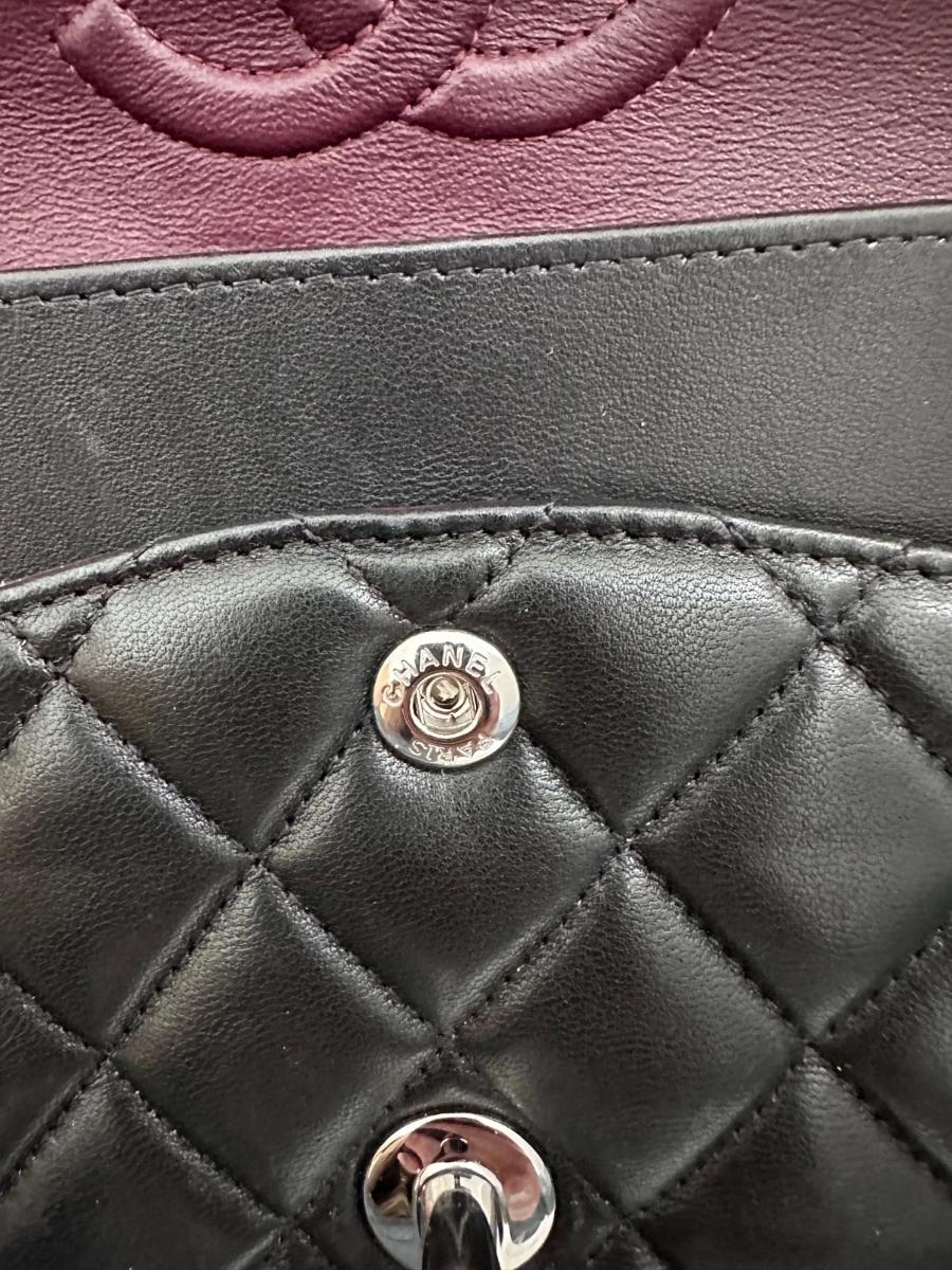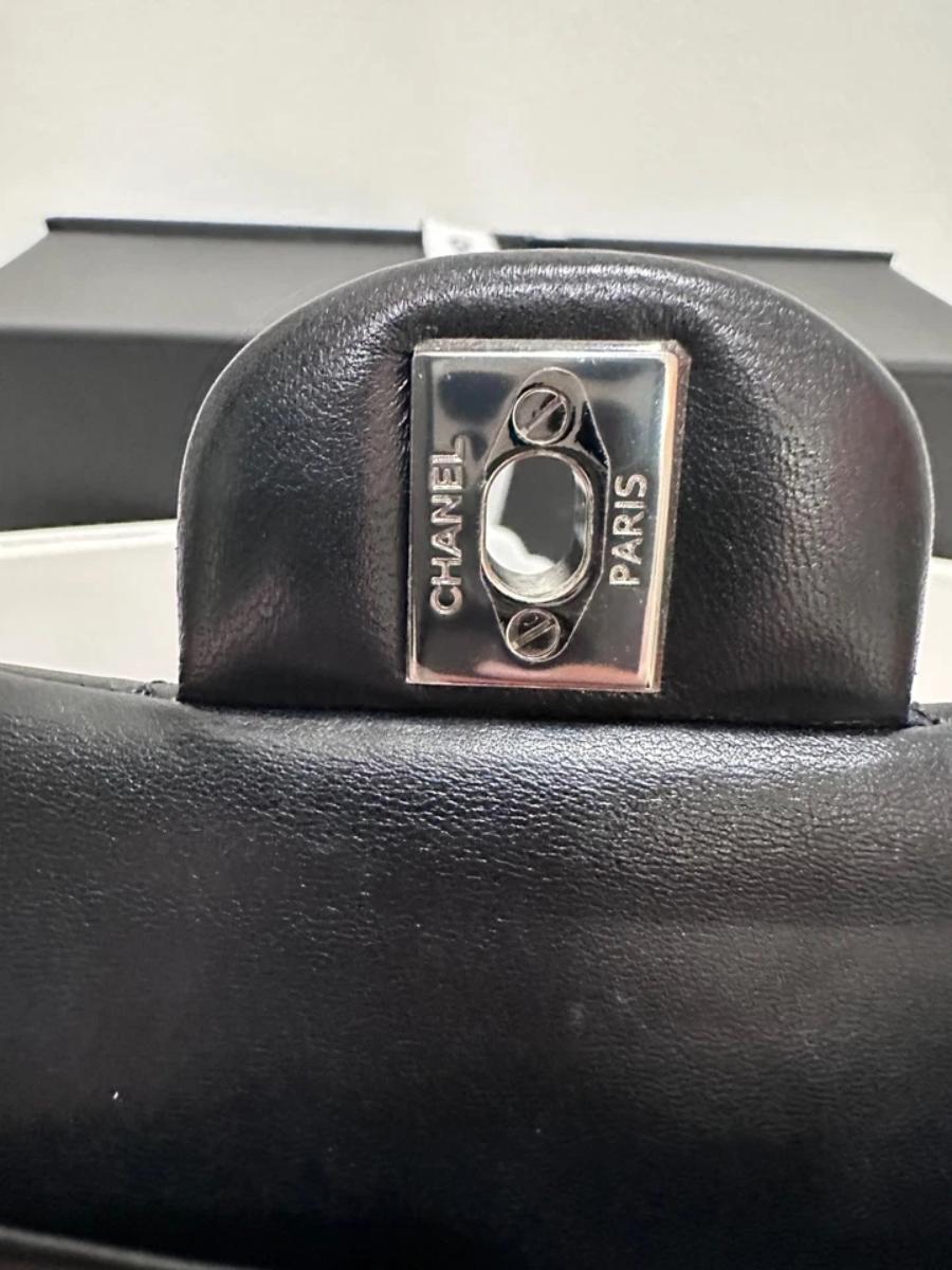 Authentic Chanel Classic Medium Double Flap – Black Lambskin – Silver Hardware – 2019 Full Set with Receipt
