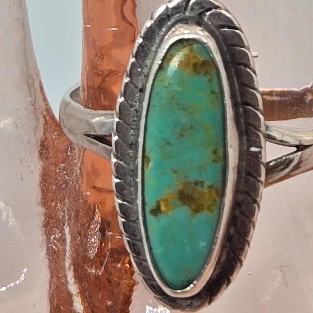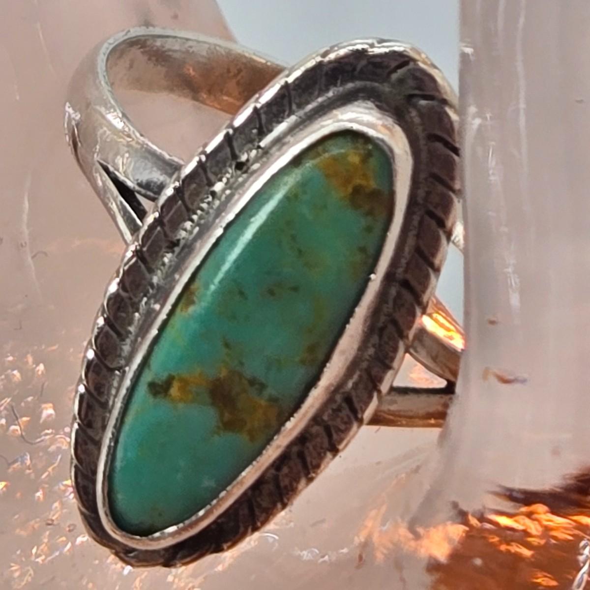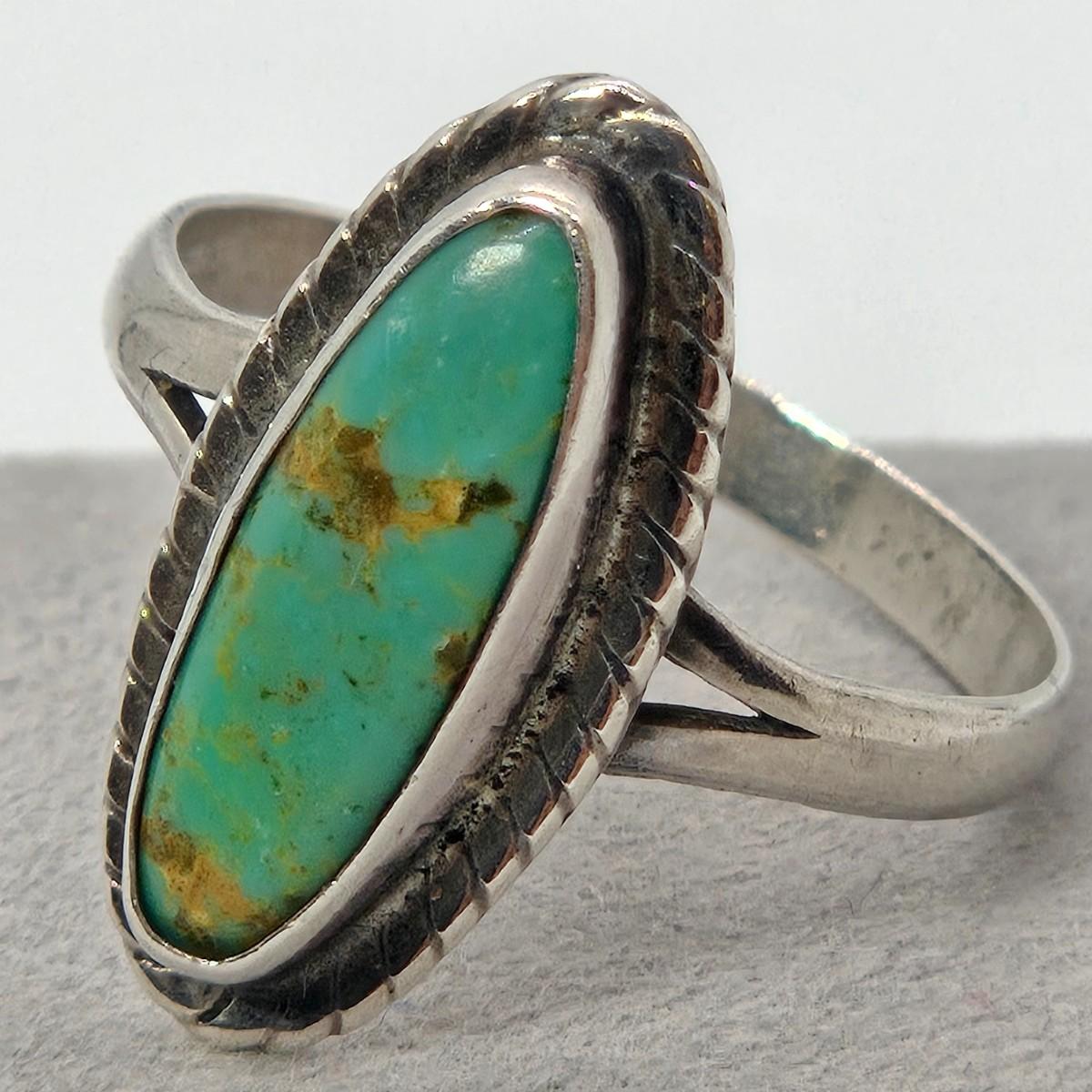 Beautiful Native American Navajo Signed Sterling Silver 925 and Turquoise Ladies' Ring / Size 7