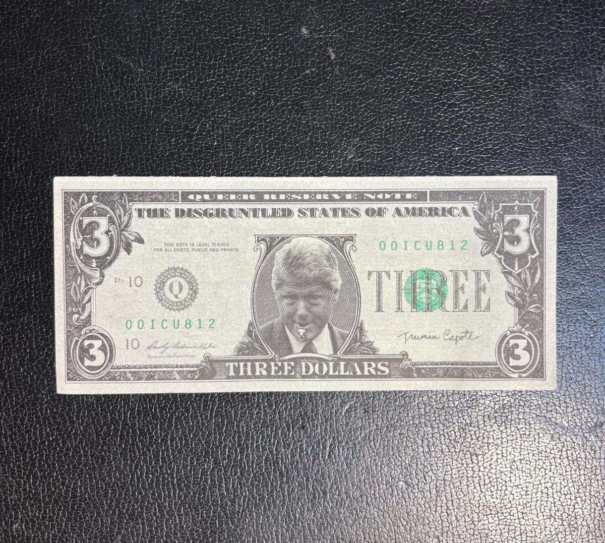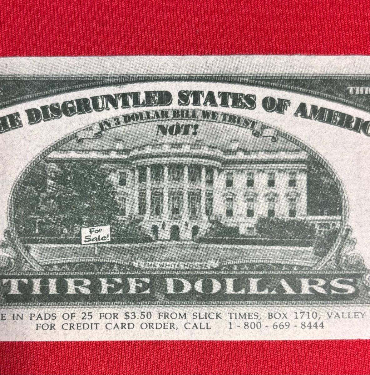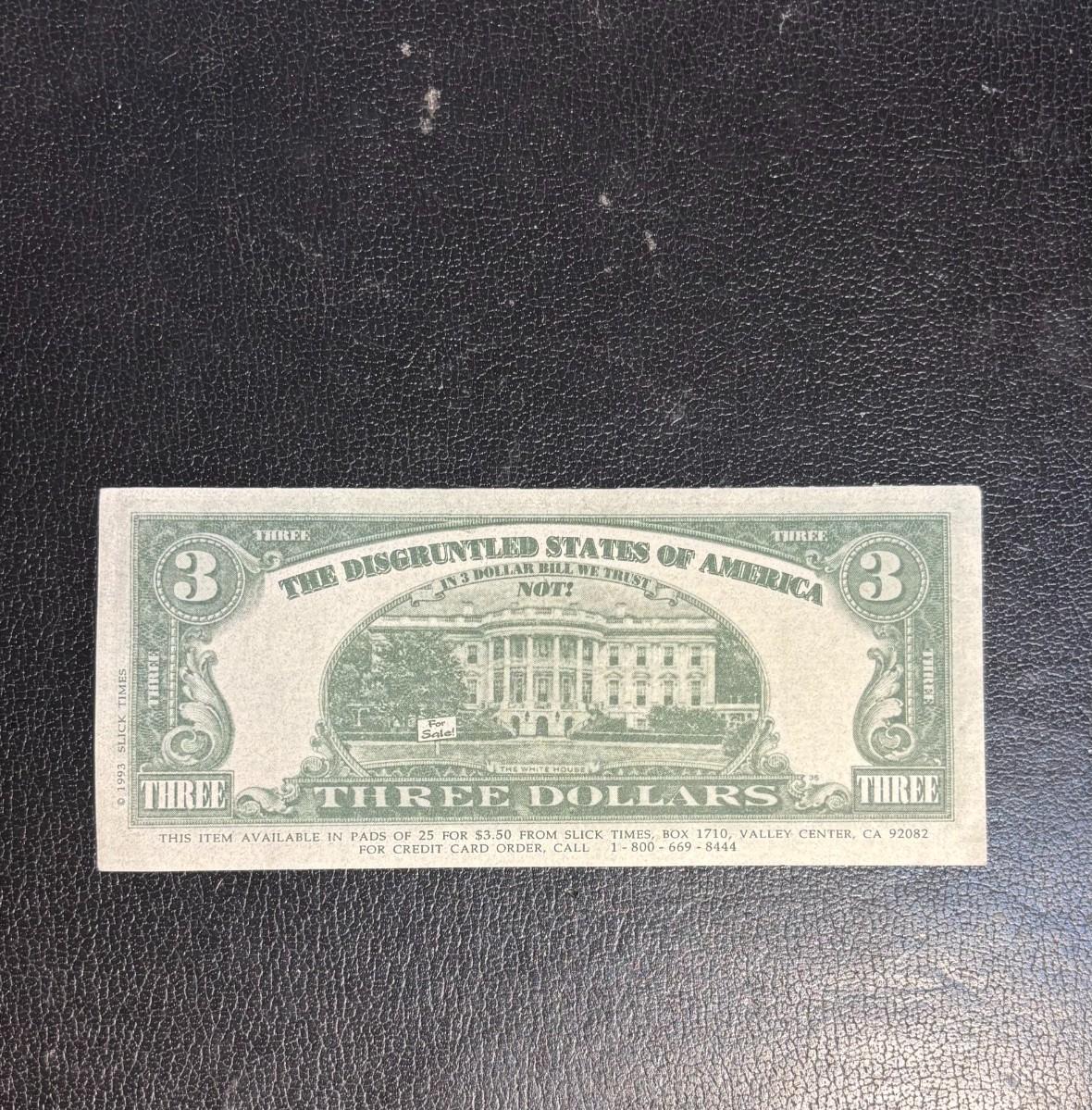 1993 Novelty Bill Clinton $3 Three Dollars Note Blowing Whistle * Disgruntled States of America, not Legal Currency Collectible Gag Gift