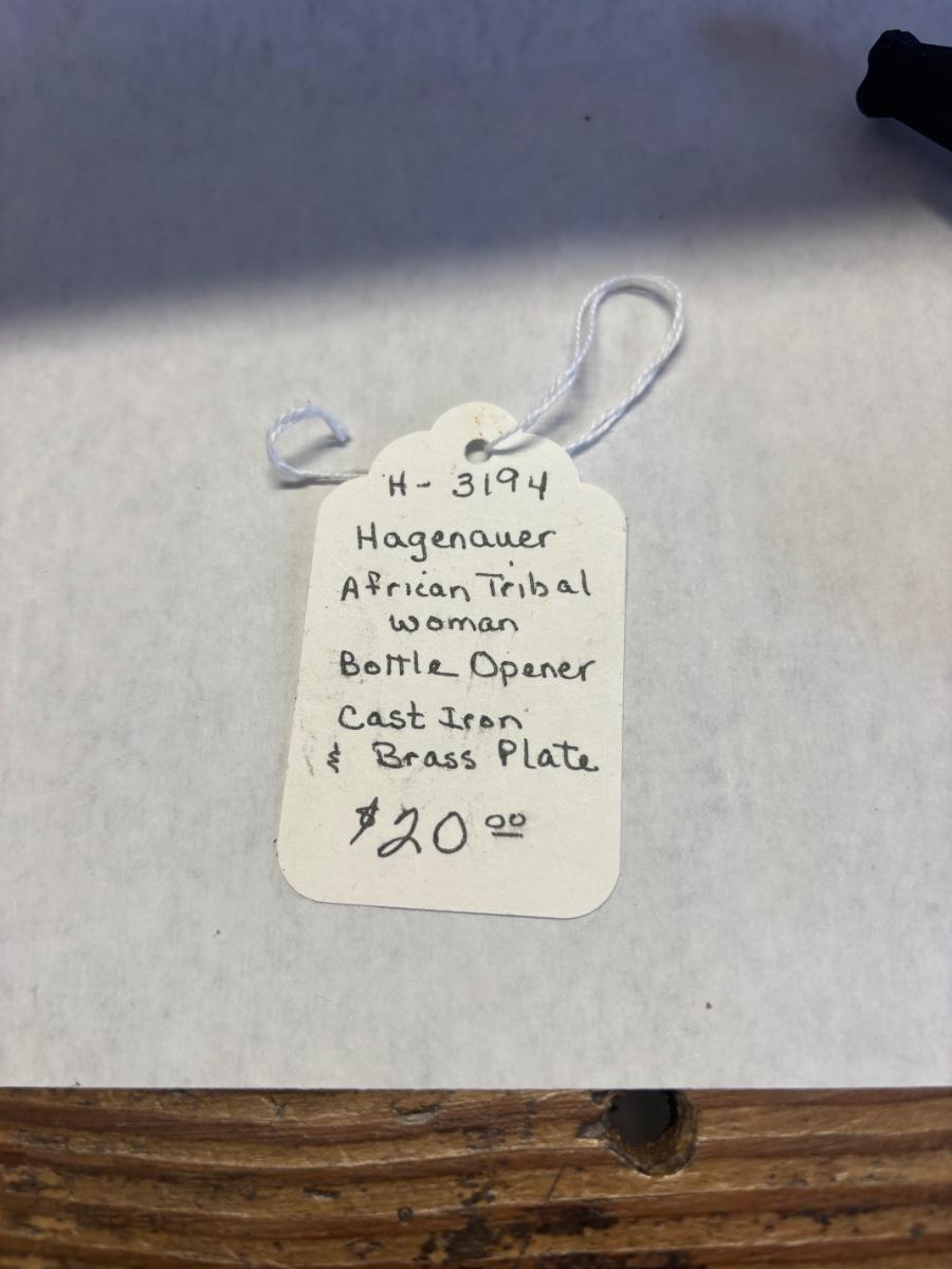Hagenauer African tribal woman bottle opener. Cast iron and brass plate