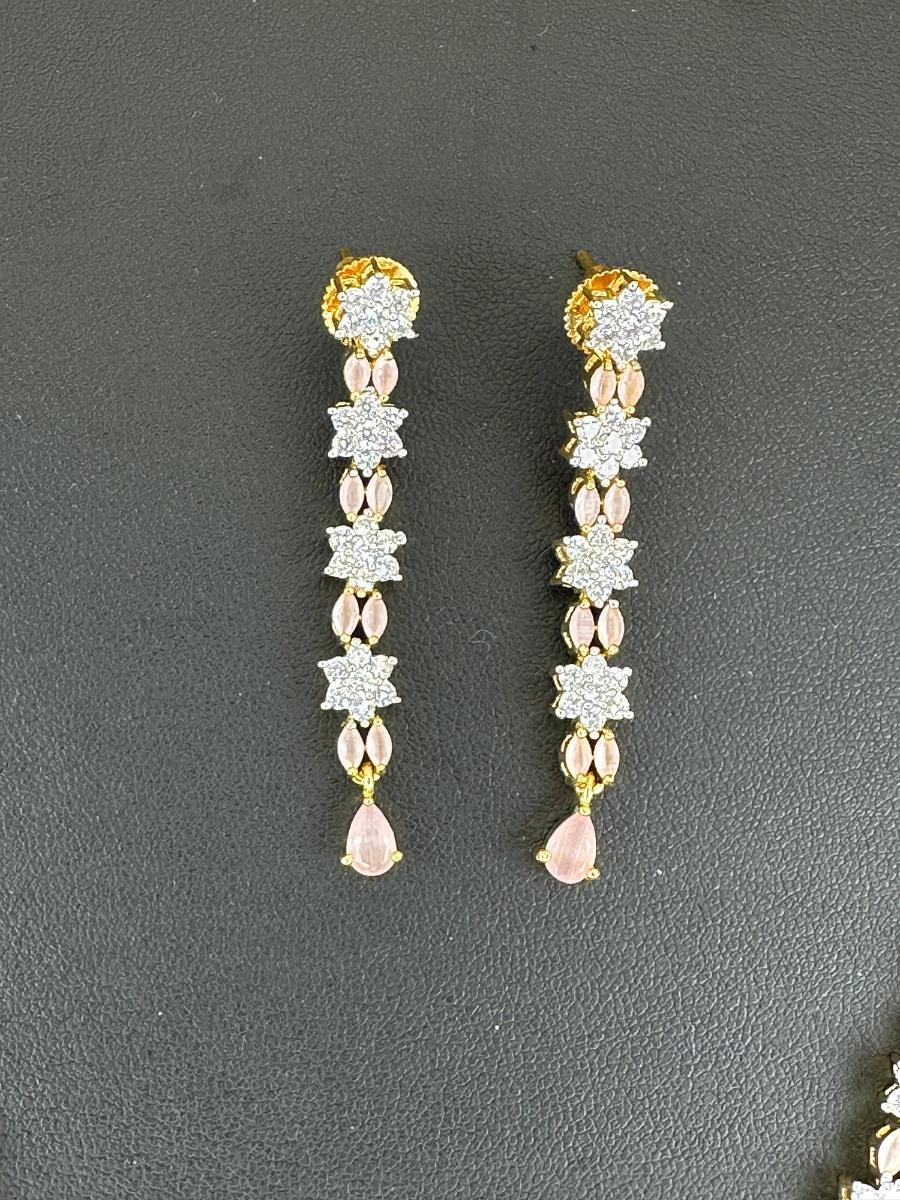 Brand New Zirconia Earrings And Necklace Rhodium Plating
