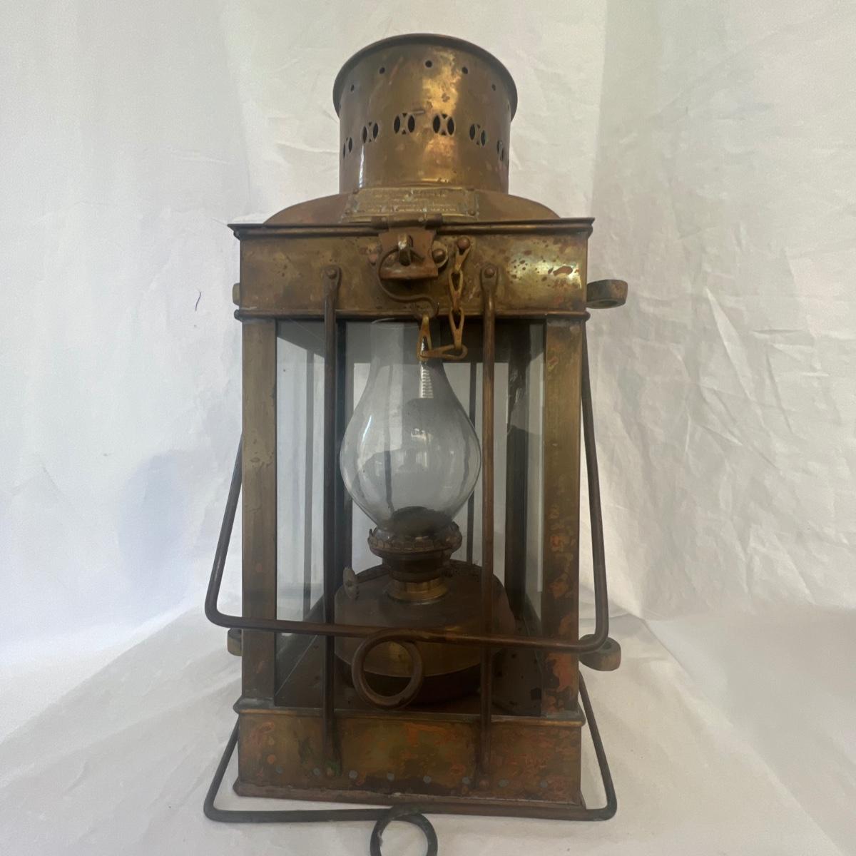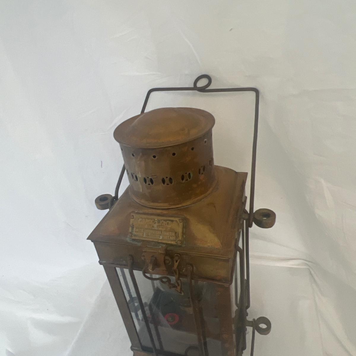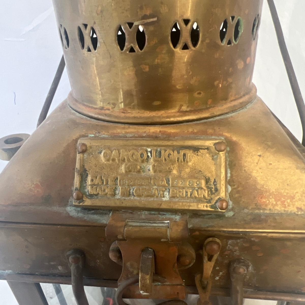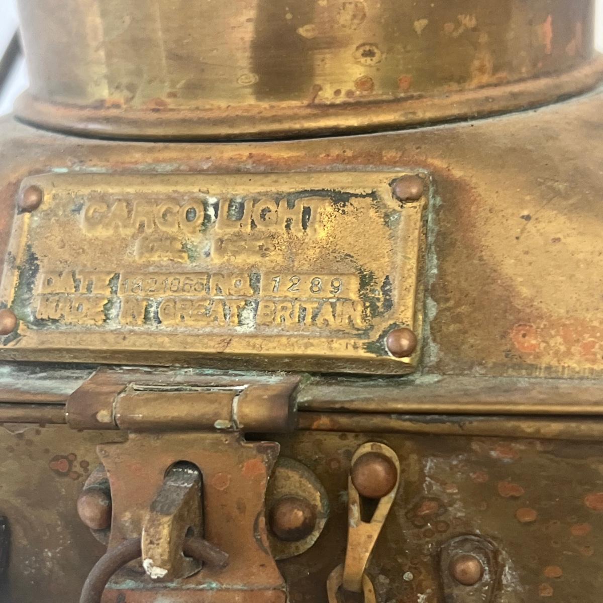 Brass Cargo Light No. 1289 Great Britain 1965s Oil Lamp Lantern 14" Tall Vintage