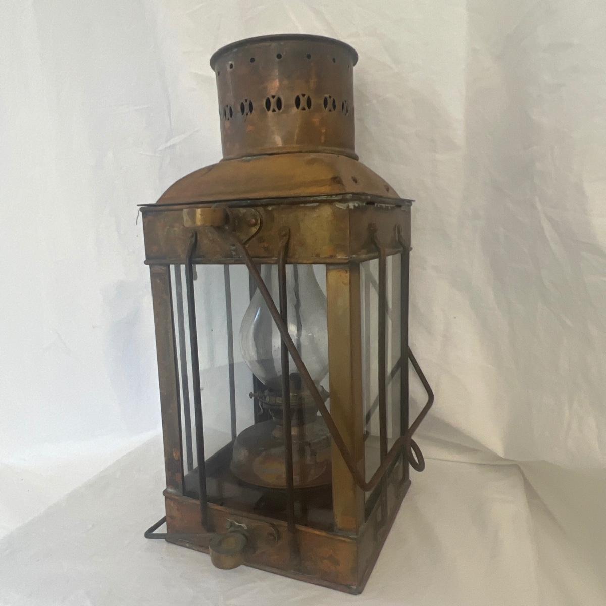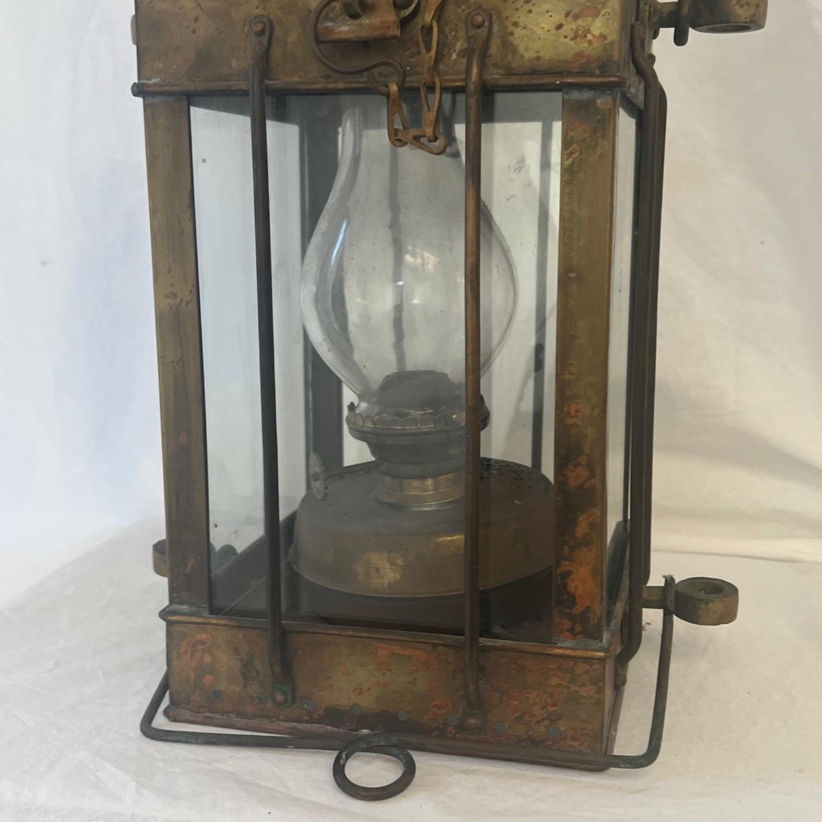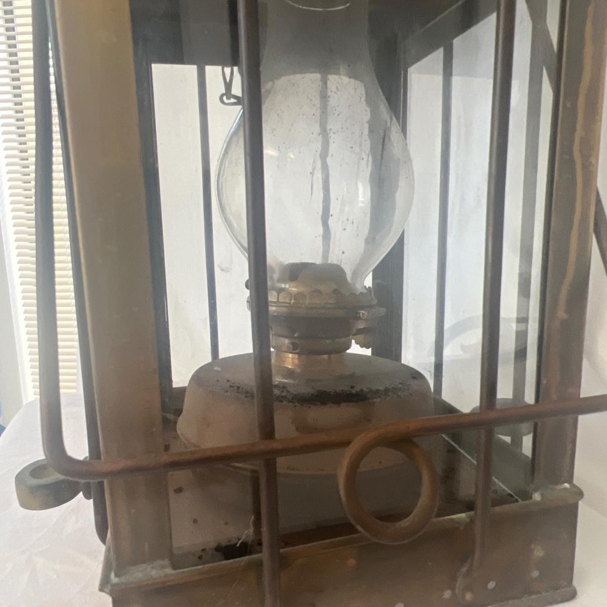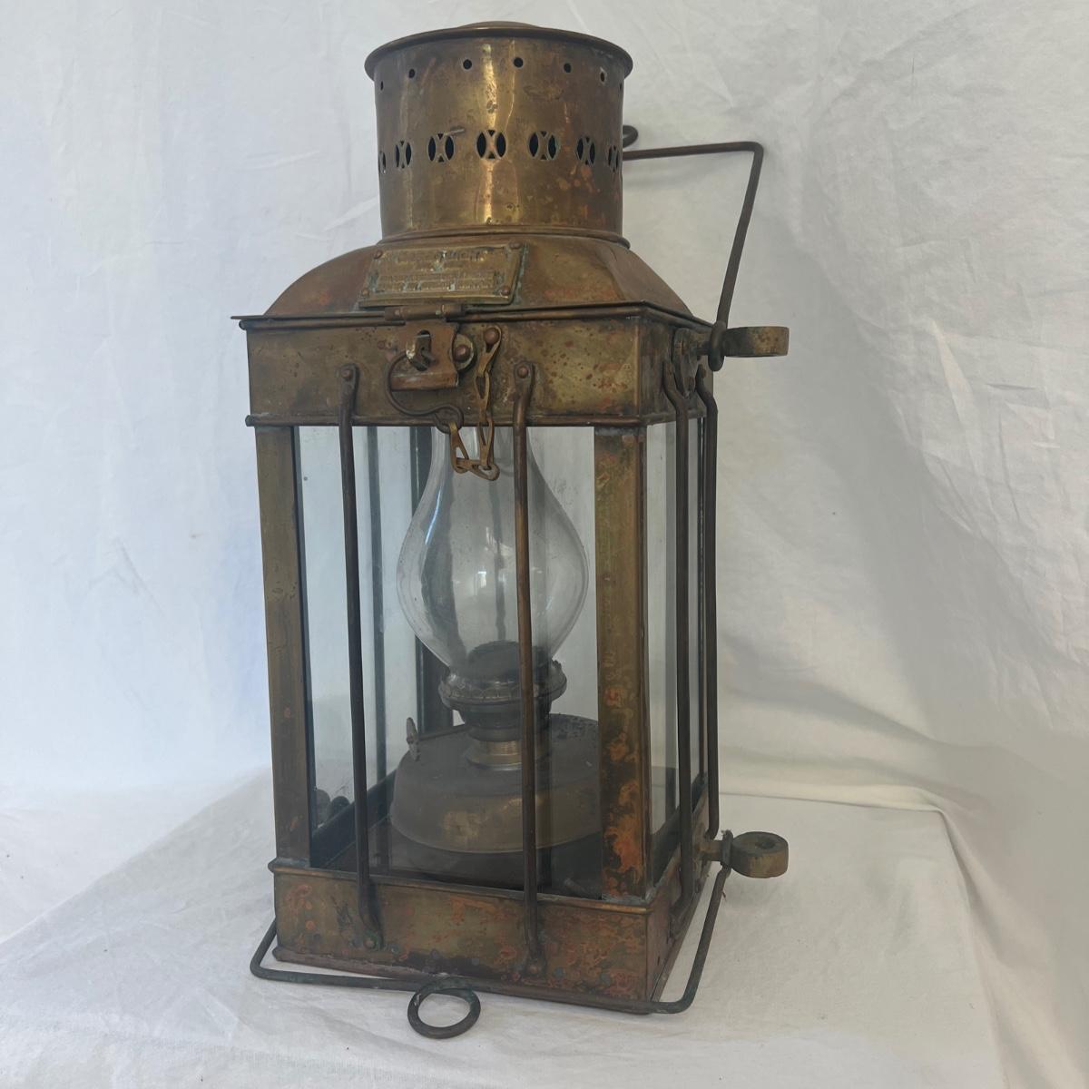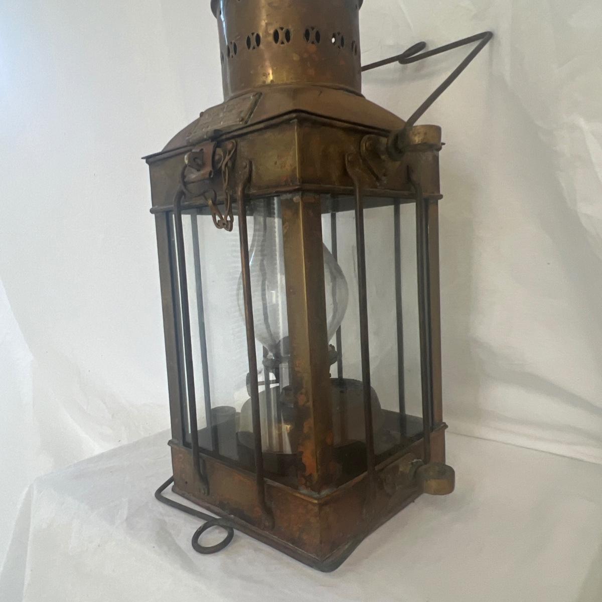 Brass Cargo Light No. 1289 Great Britain 1965s Oil Lamp Lantern 14" Tall Vintage