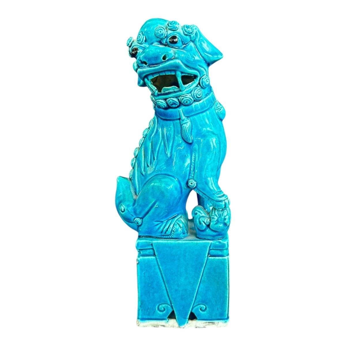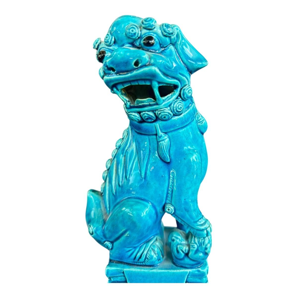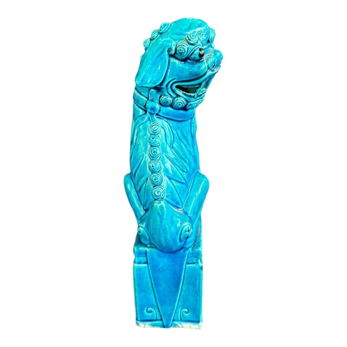 Ceramic Turquoise Chinese Foo Dog Figurine Chinoiserie Bookshelf