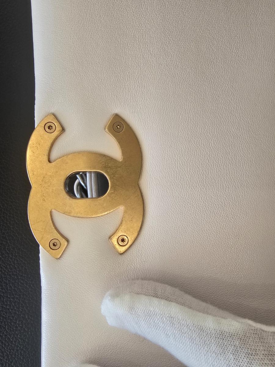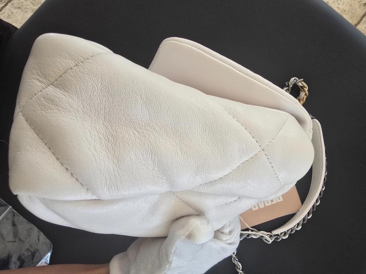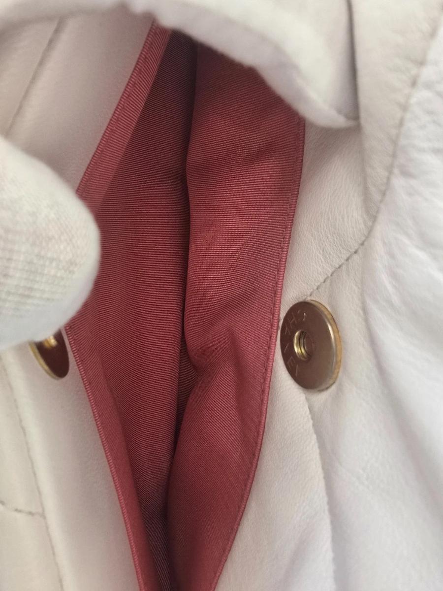 Exterior: The white quilted leather is supple and pillowy, maintaining its structure beautifully.