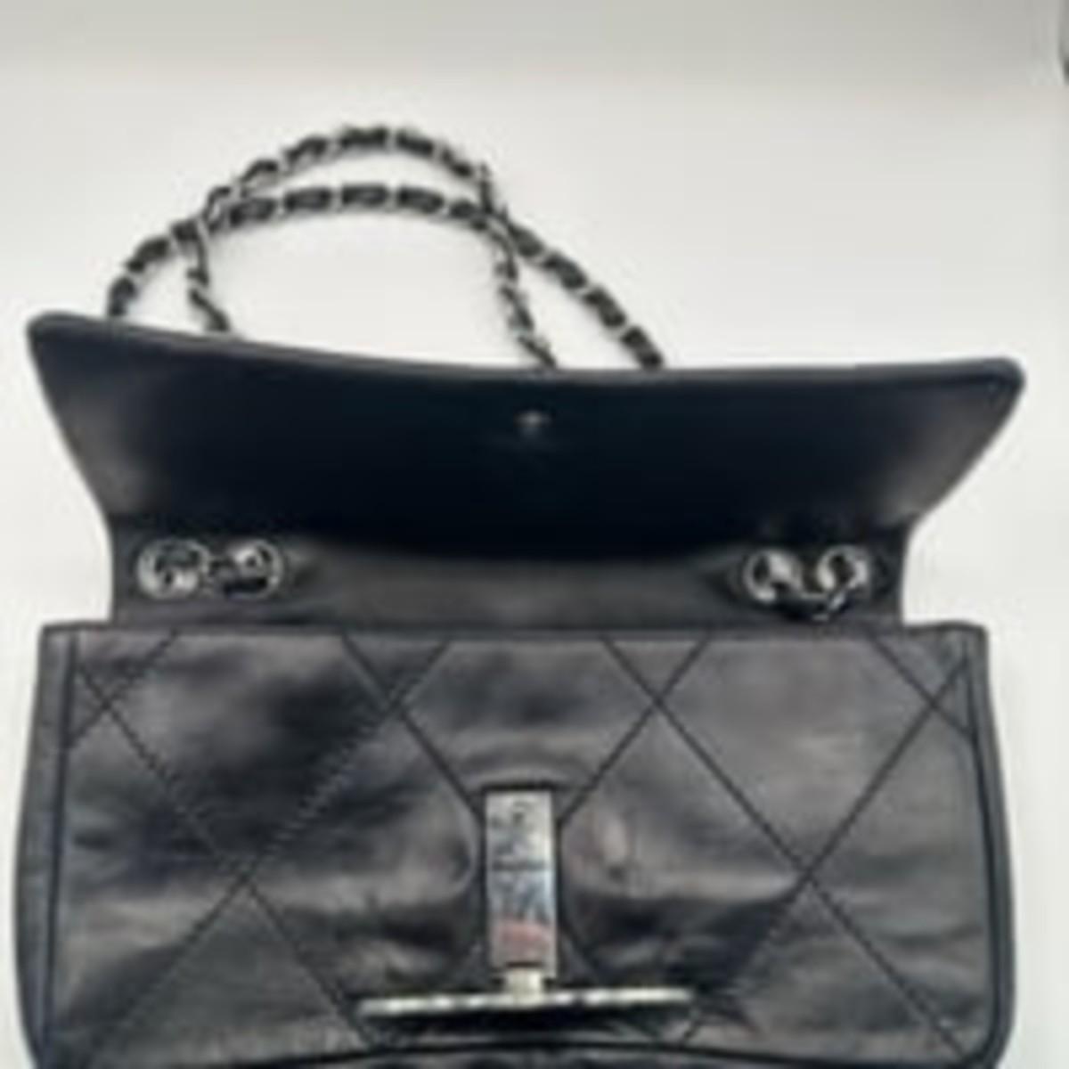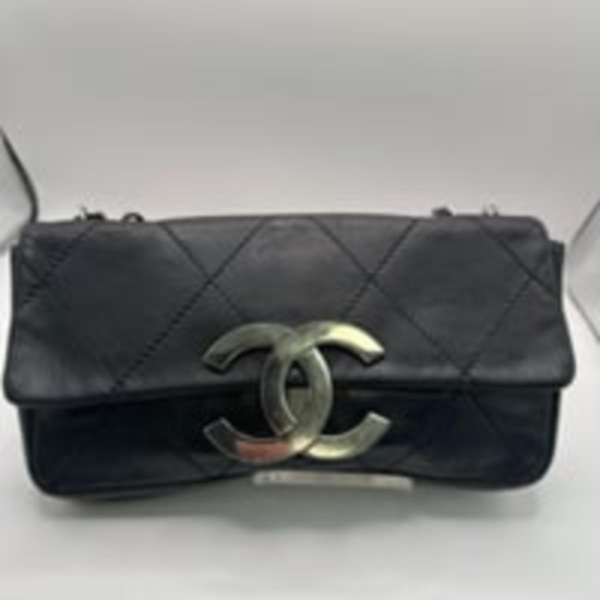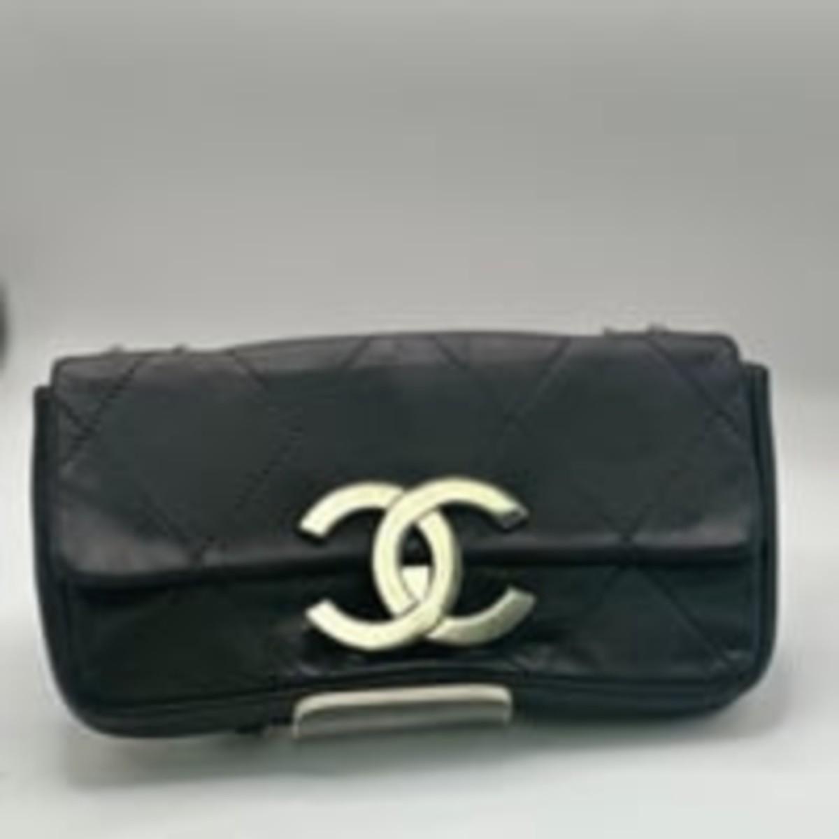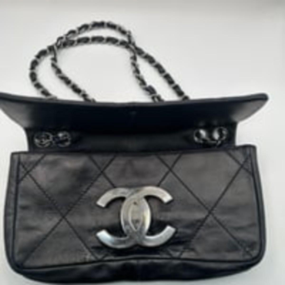 Authenticated Chanel flap double chain bag Color: black soft calfskin Silver hardware Size: 7.5 x 5” Condition: good used