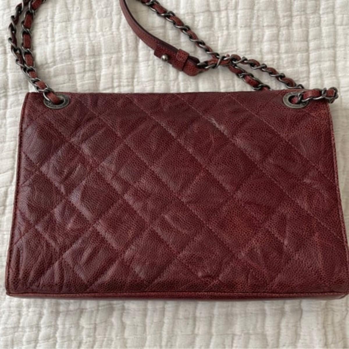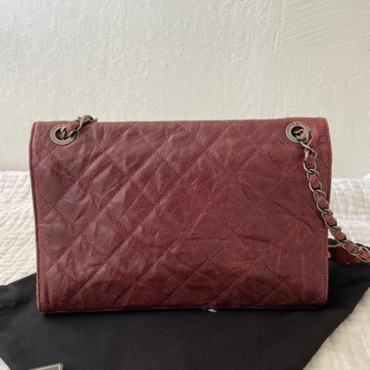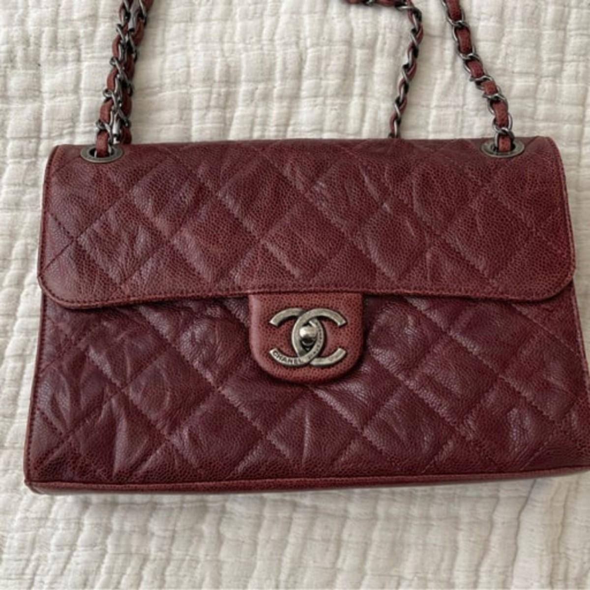 Chanel CC Crave Jumbo flap bag in burgundy glazed quilted caviar leather. From the Chanel Pre-Fall 2013 collection, the CC Crave flap bag is perfect for everyday use. Featuring durable grained distressed caviar leather with the classic diamond stitched pattern and chain/leather entwined handle that has a leather shoulder pad at the top for comfort. This flap bag is perfect for all that you need to carry. Shoulder Strap Length: 20" Handle Drop: 11.5" Height: 8" Width: 12.5" Depth: 4" Used only twice! The exterior leather is clean and beautiful throughout with minor wear at the bottom corner edges. a little scratches on the bottom. The interior lining remains clean and in excellent condition overall. Comes With Dust bag Authenticity card