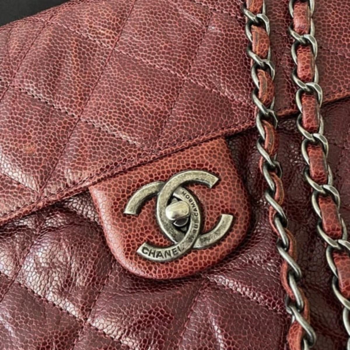Chanel CC crave flap bag quilted glazed caviar jumbo