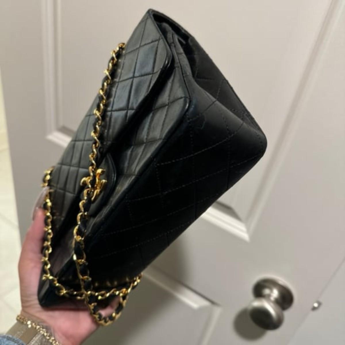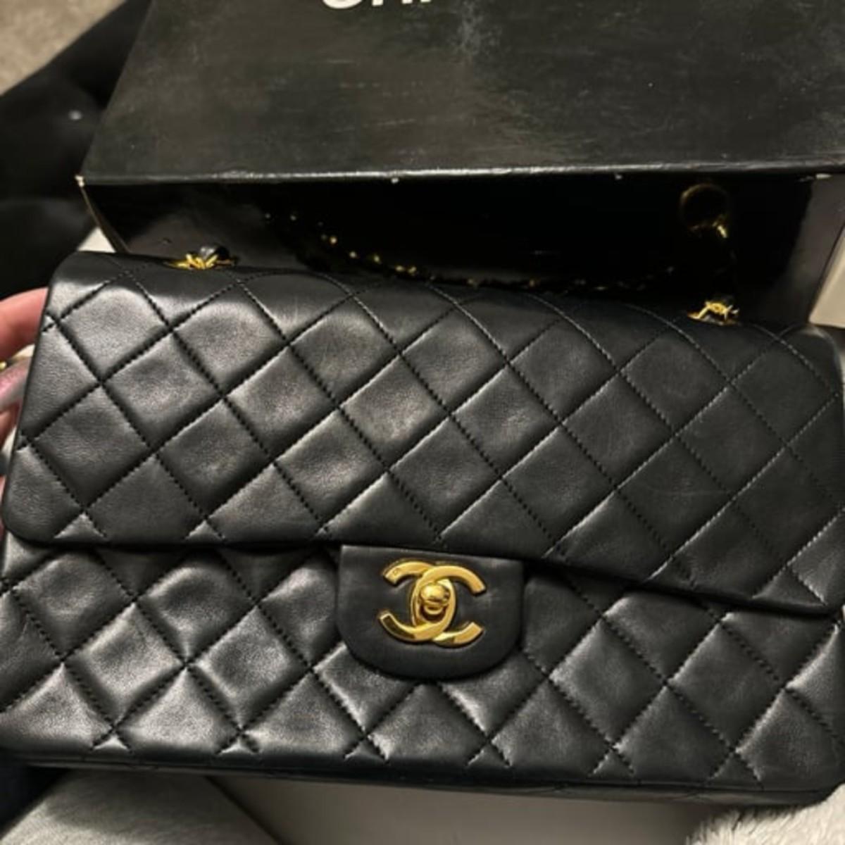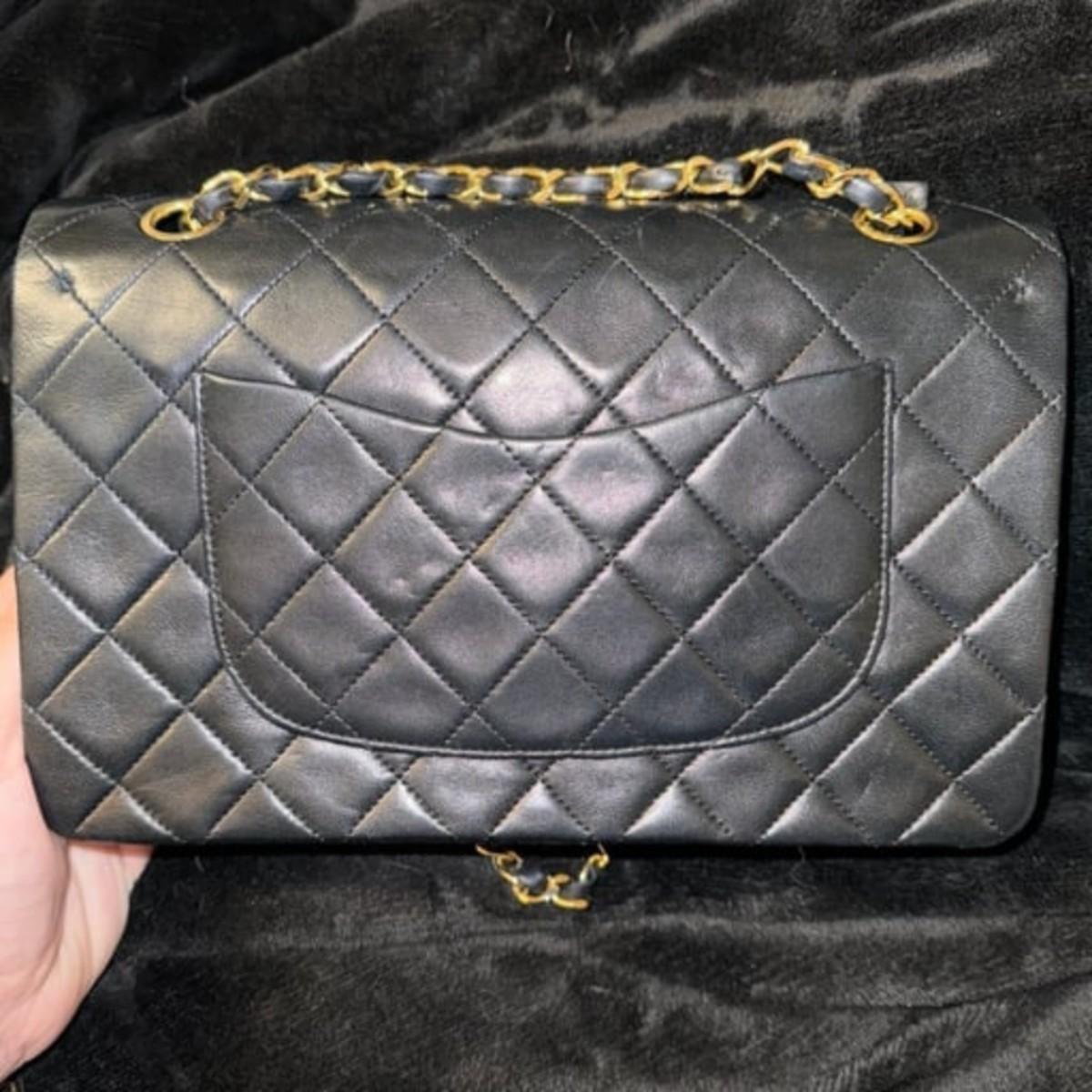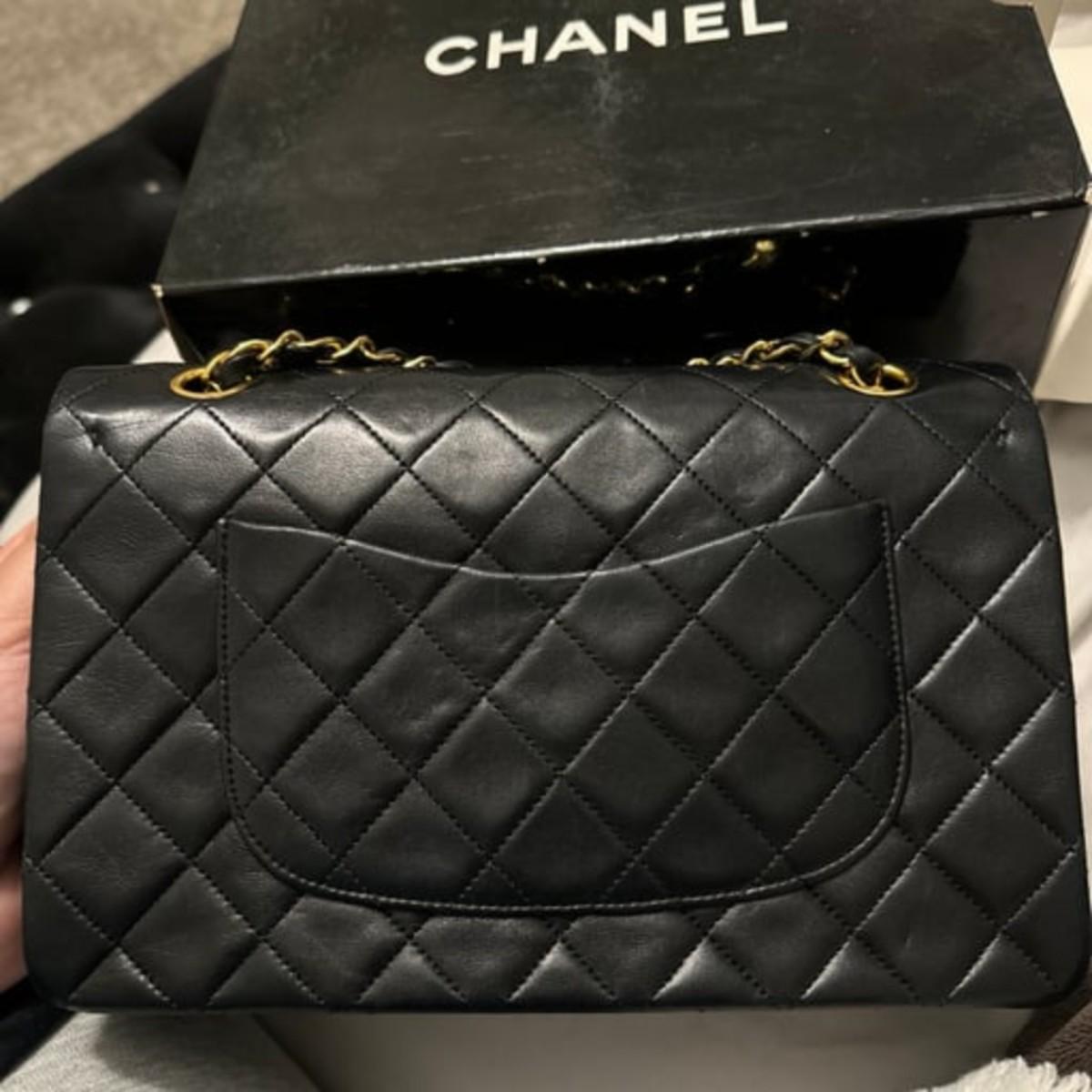 Preloved Vintage medium Classic Chanel Double Flap with original 24k gold hardware. Some wear on the corners. Inside is in good condition only flaw is the back inner pockets have peeling. Comes with original box, dustbag, and authenticity card.