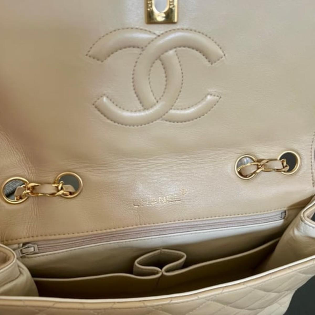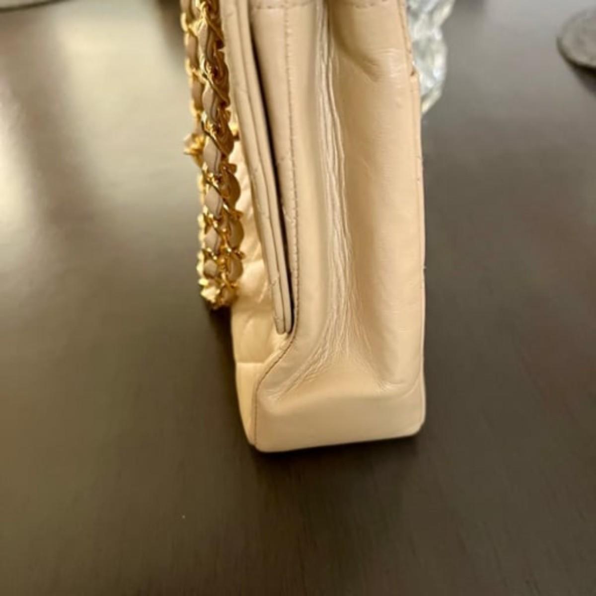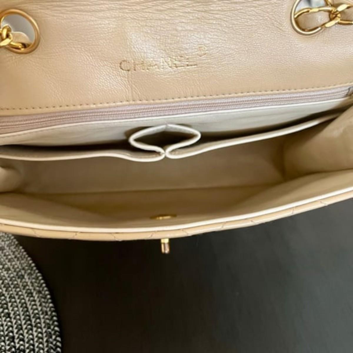 Beautiful vintage Chanel flap bag from the 80’s in lambskin, the inside pockets the leather was remove ,but no stickiness at all, some wear in the corners of the inside (check photos please). The gold chain and the hardware still beautiful, the only callout is a little discoloration in the turn lock (check photo) but other than that still beautiful for her age. No offensive odor. The measurements are: 9 1/2 inches across 7 inches tall 2 1/2 inches width Please review ALL the photos before purchase. *NO INCLUSIONS* (Just the bag) FINAL SALE NO RETURNS
