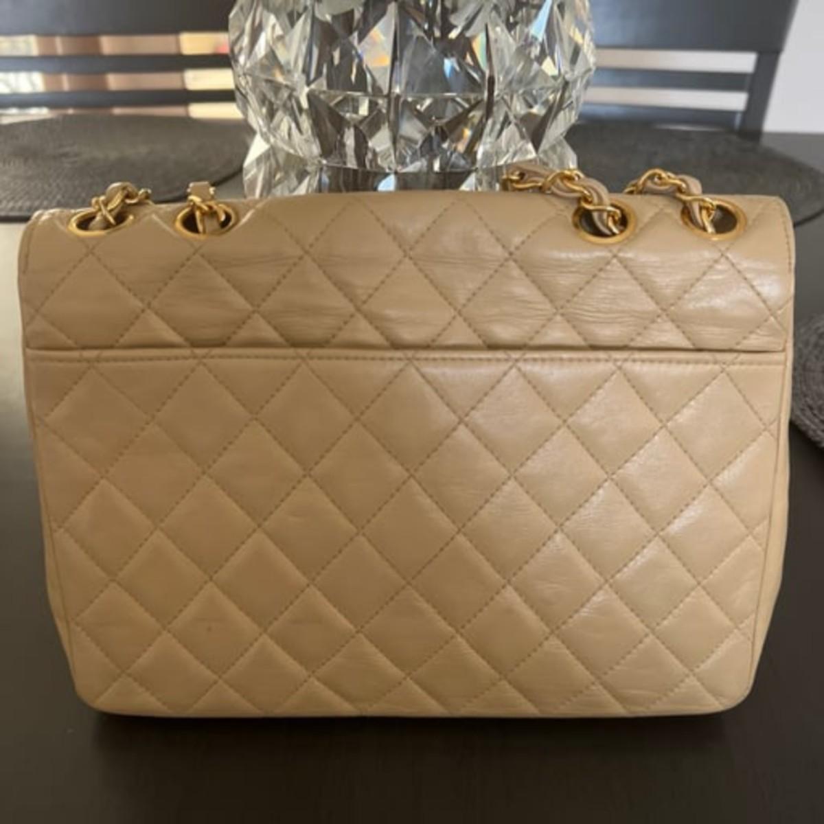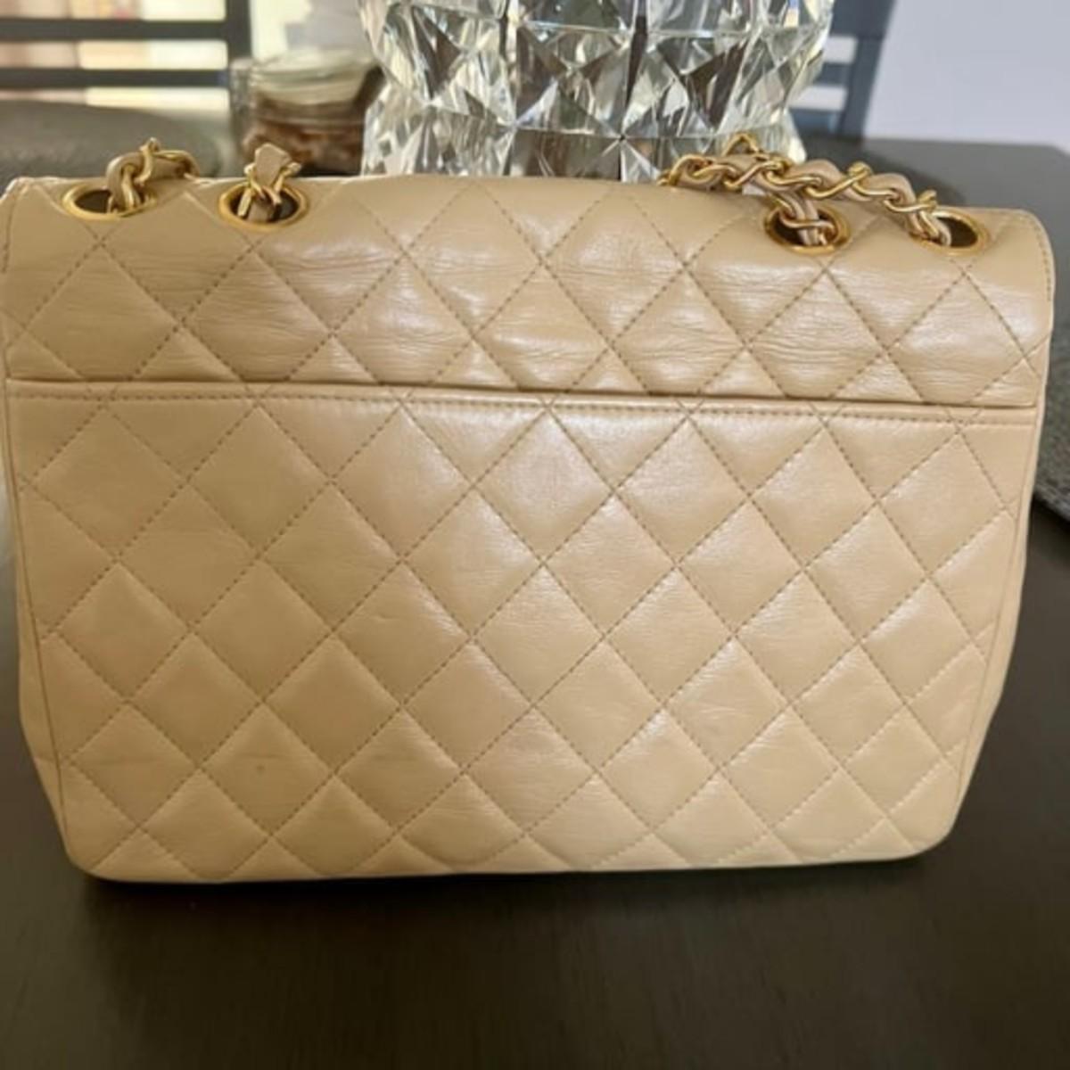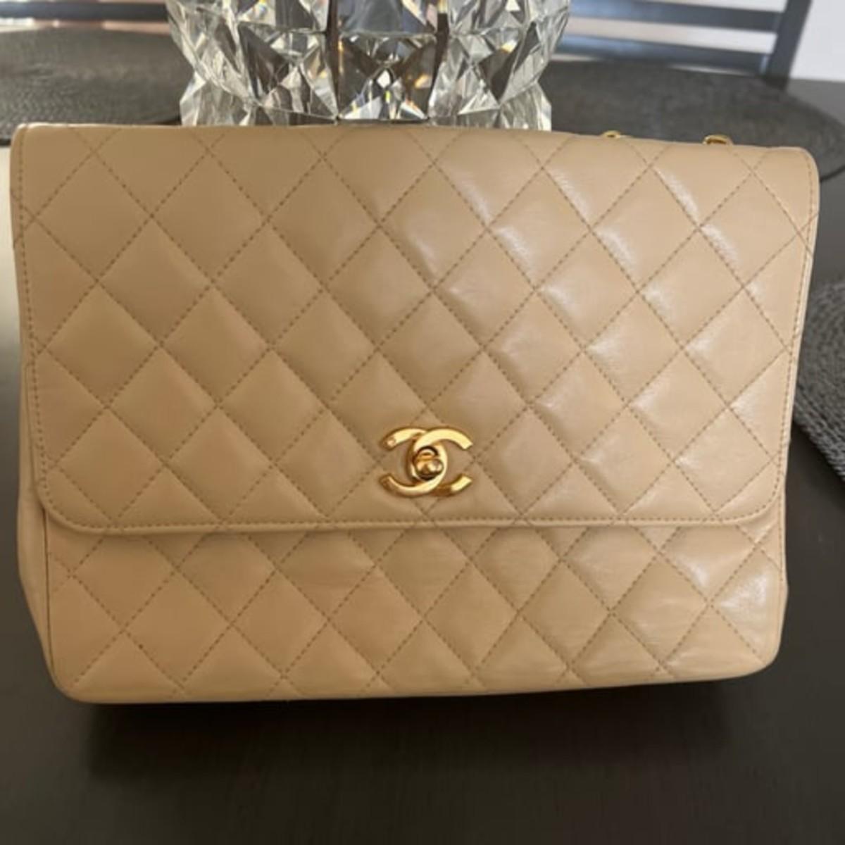 Beautiful vintage Chanel flap bag from the 80’s in lambskin, the inside pockets the leather was remove ,but no stickiness at all, some wear in the corners of the inside (check photos please). The gold chain and the hardware still beautiful, the only callout is a little discoloration in the turn lock (check photo) but other than that still beautiful for her age. No offensive odor. The measurements are: 9 1/2 inches across 7 inches tall 2 1/2 inches width Please review ALL the photos before purchase. *NO INCLUSIONS* (Just the bag) FINAL SALE NO RETURNS
