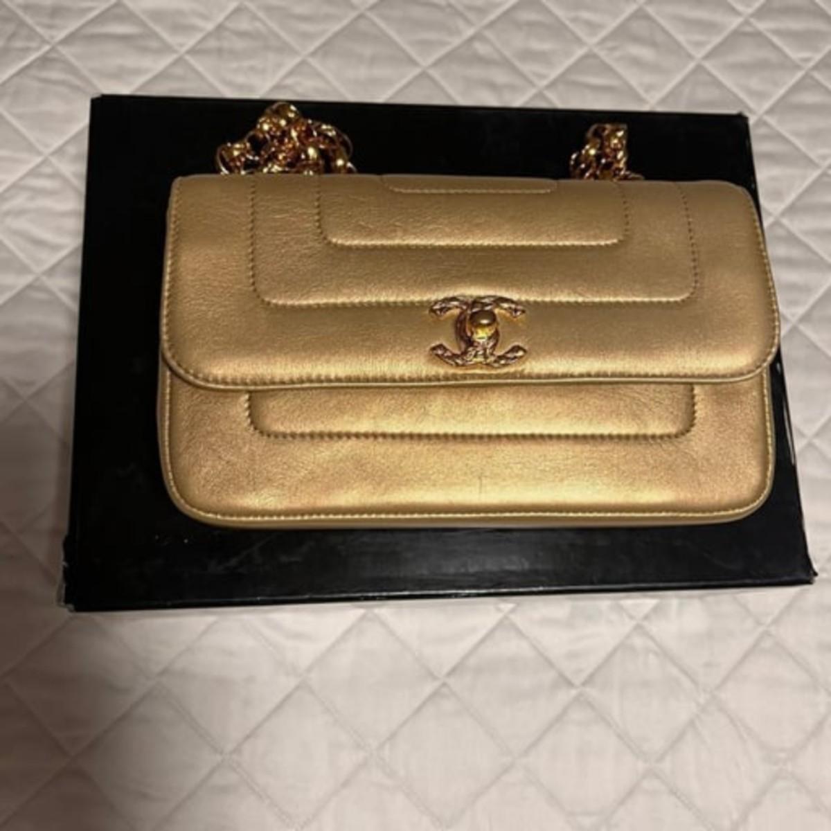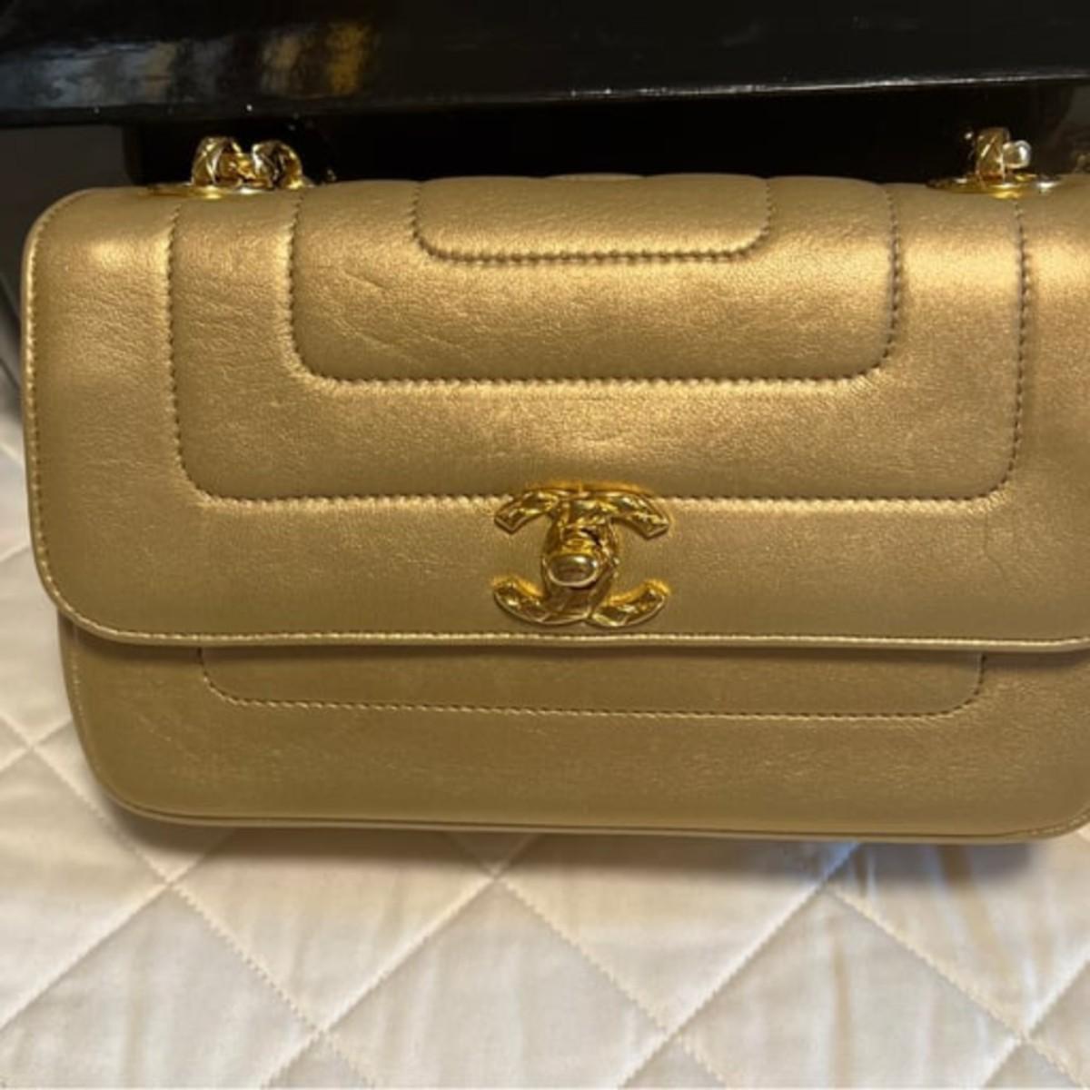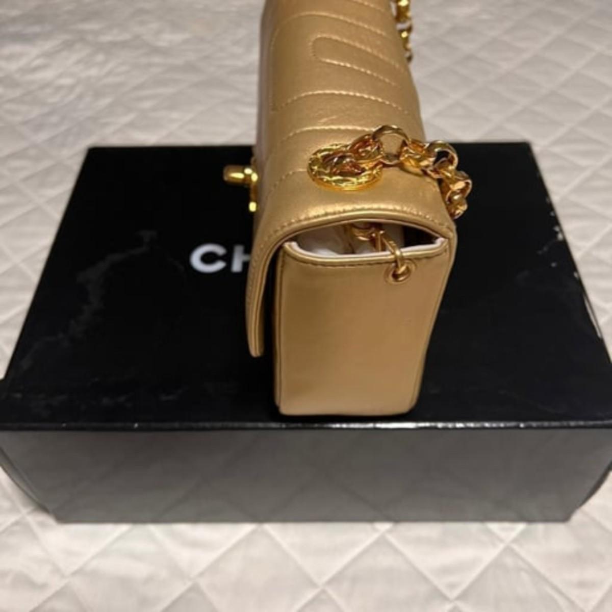 CHANEL vintage mini flap crossbody bag. With gold chain. Never was use, just sitting in the box in the closet. Absolutely clean inside and out. Has original dust bag and box. Smoke free environment. The length is 7.5” inches. The height is 4.5” inches and 2” inches width.