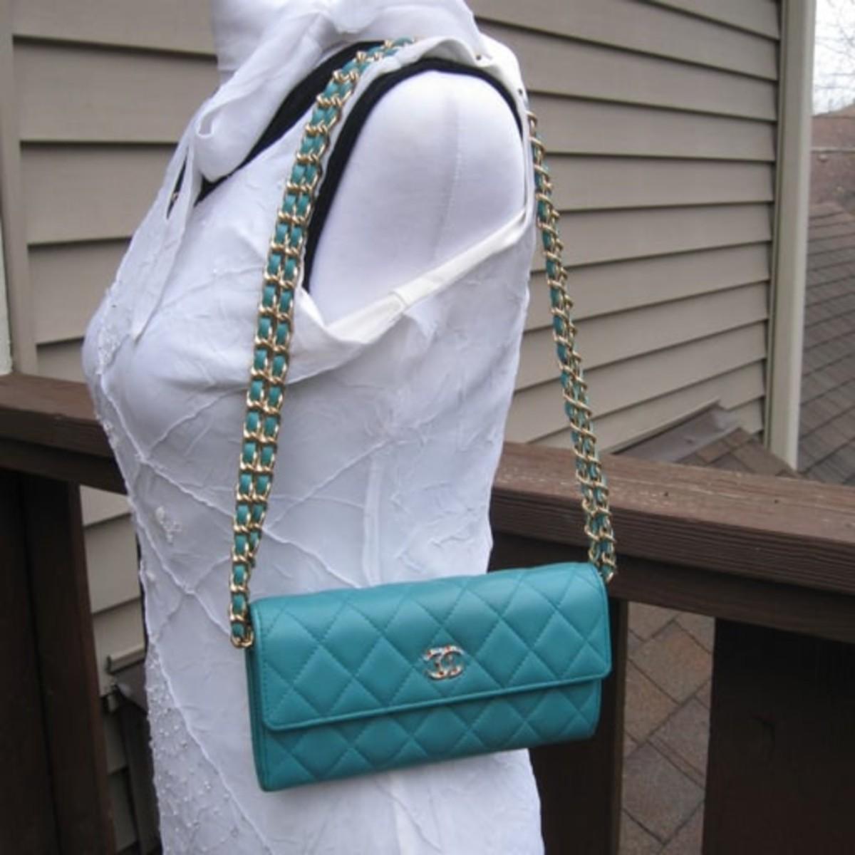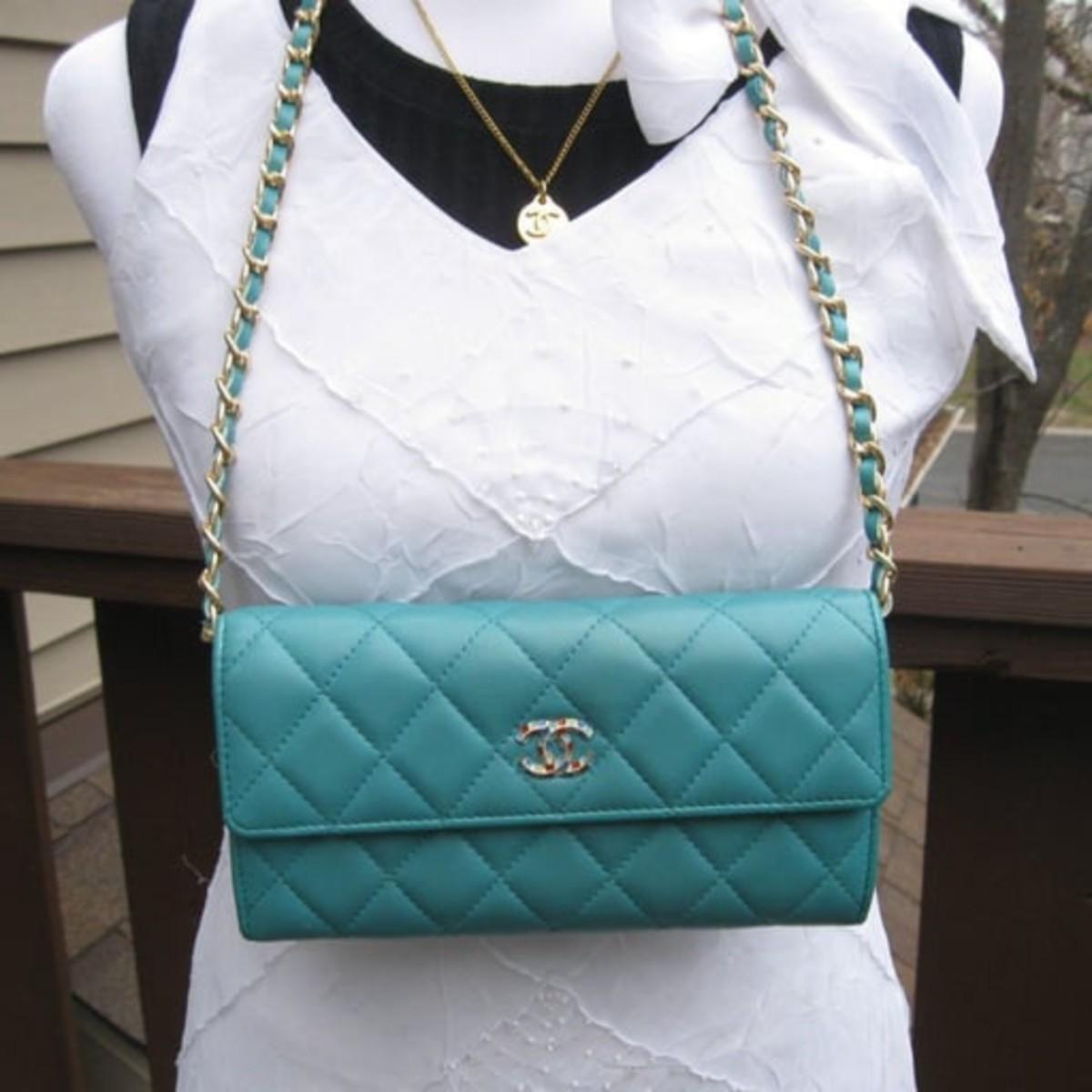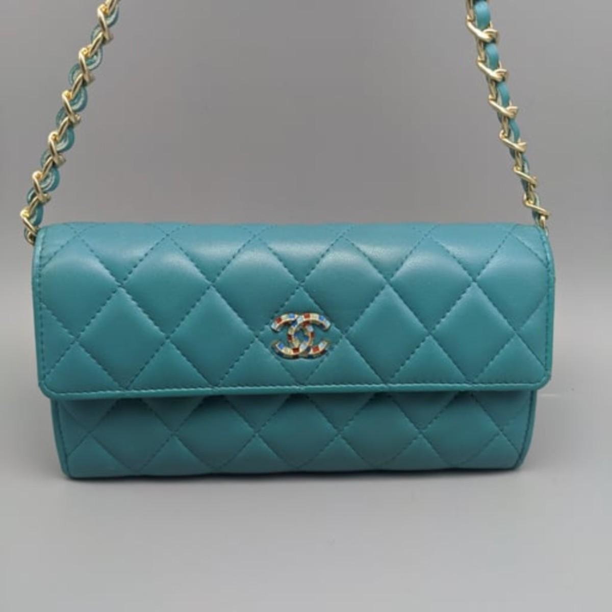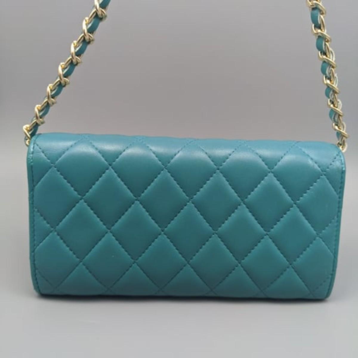 Chanel Turquoise Lambskin Leather CC Flap Bag Wallet