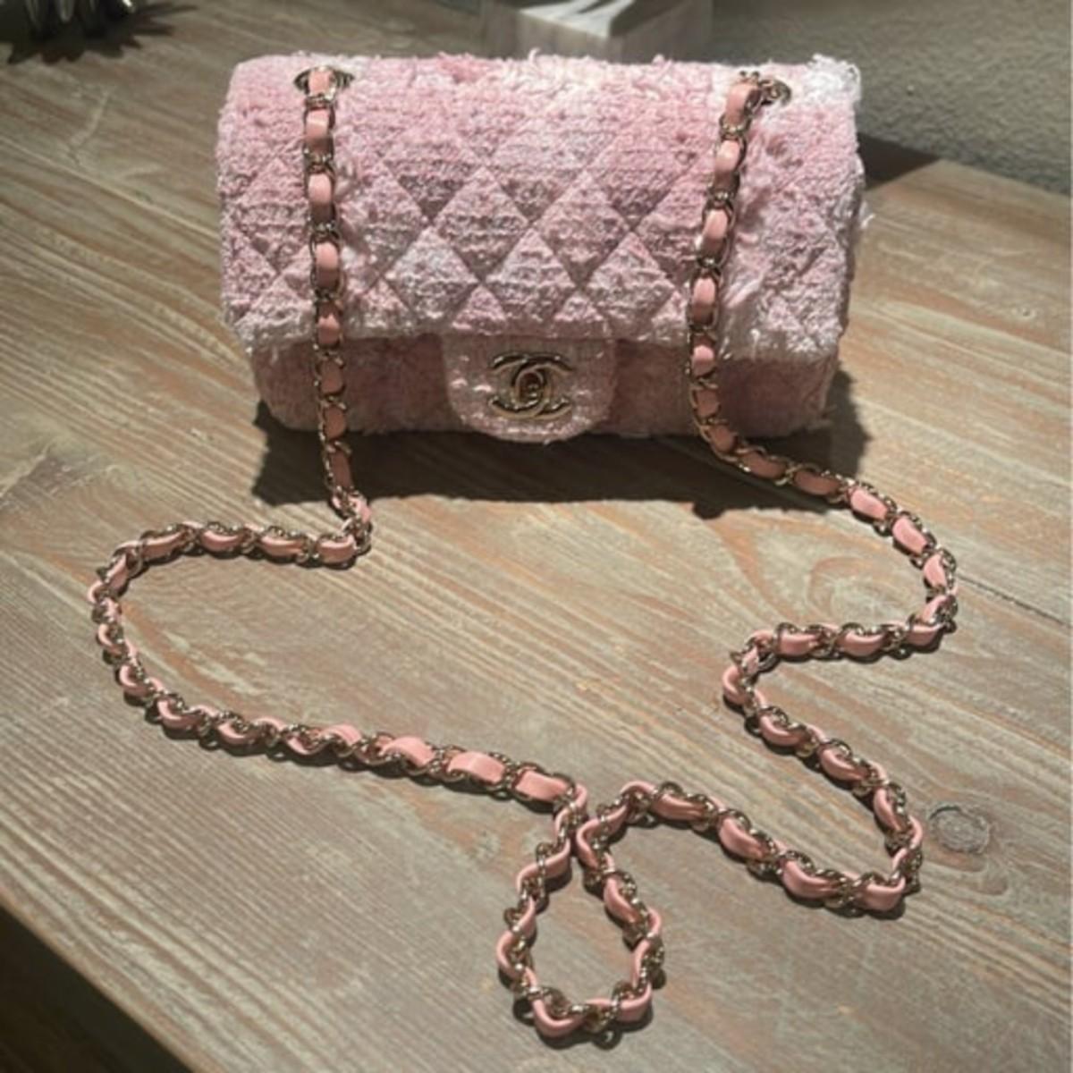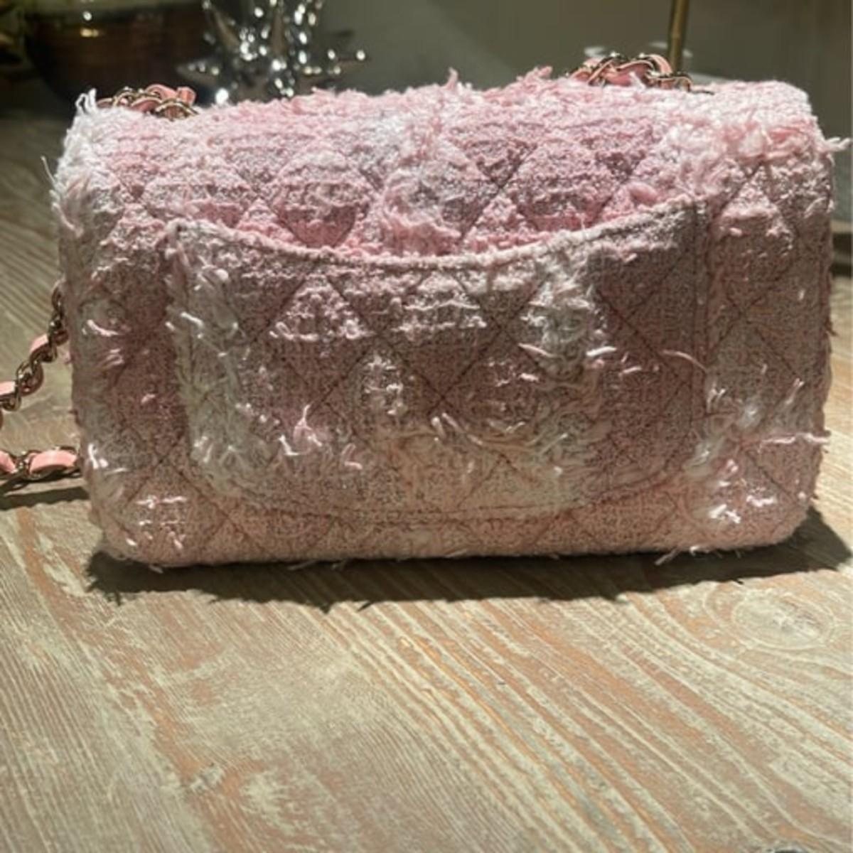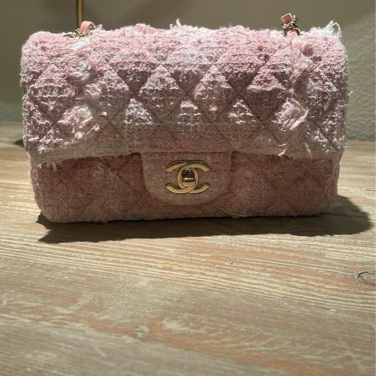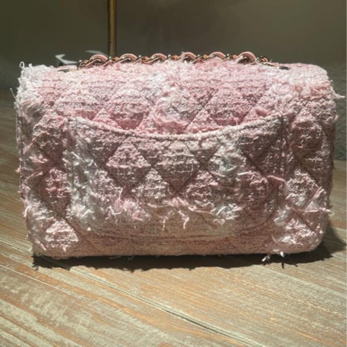 Chanel pink/white tweed quilted mini flap bag from 22c collection brand new never used. Has shiny gold hardware. See various tweed colors on bag. Gorgeous collectors piece. Can be worn dressy or everyday.