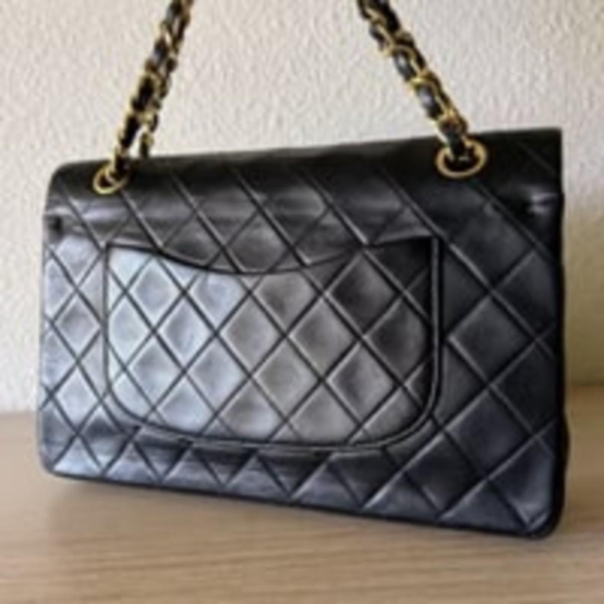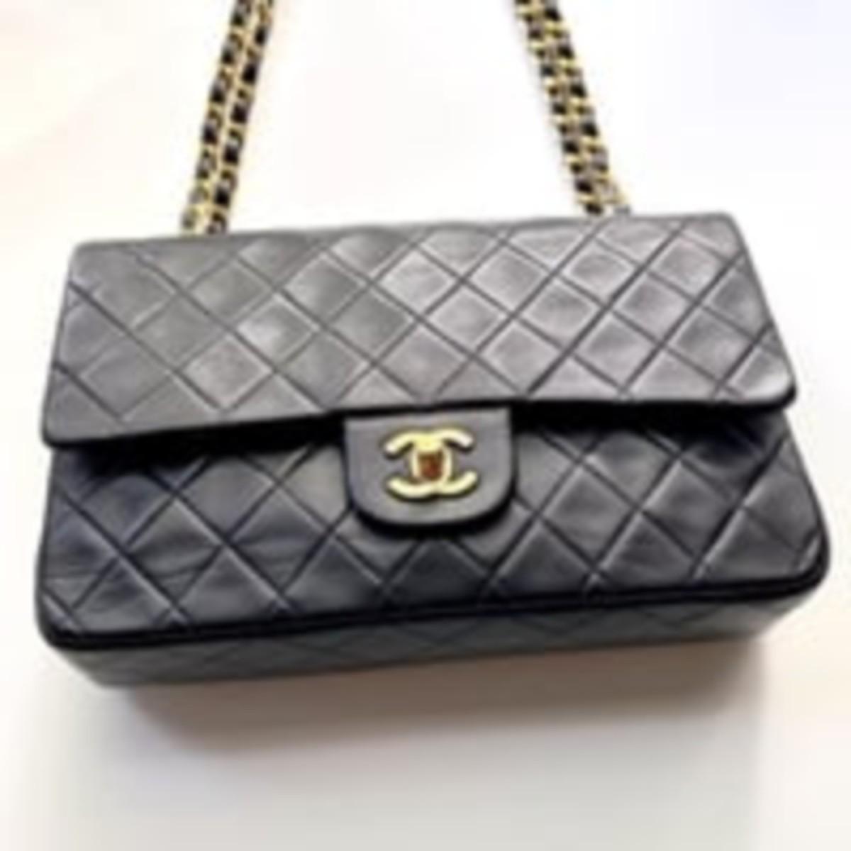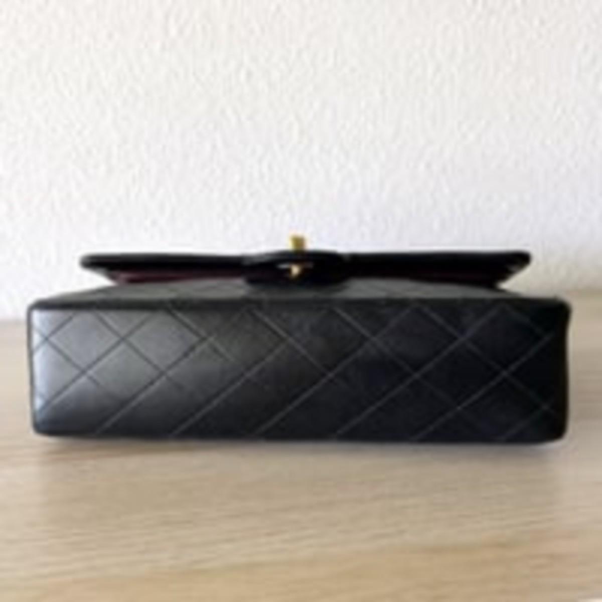 CHANEL Vintage Medium Black Lambskin Leather Classic Double Flap Bag. Gold Plated Hardware. 100% AUTHENTIC GUARANTEED! Measurements: Length - 10” Height - 6.5” Width - 2.5” Strap Drop - 17” Condition: Very Good Pre-Owned Condition. This bag is in great shape for its age. The gold plated hardware is still vibrant and shiny, the strap is in great shape, the leather is soft, and the interior is clean. There is some wrinkling to the exterior leather as shown, very light edge wear. Serial sticker is damaged. General wear and aging as to be expected with the age of the bag. Sold alone. No dust bag, box, or authenticity card.