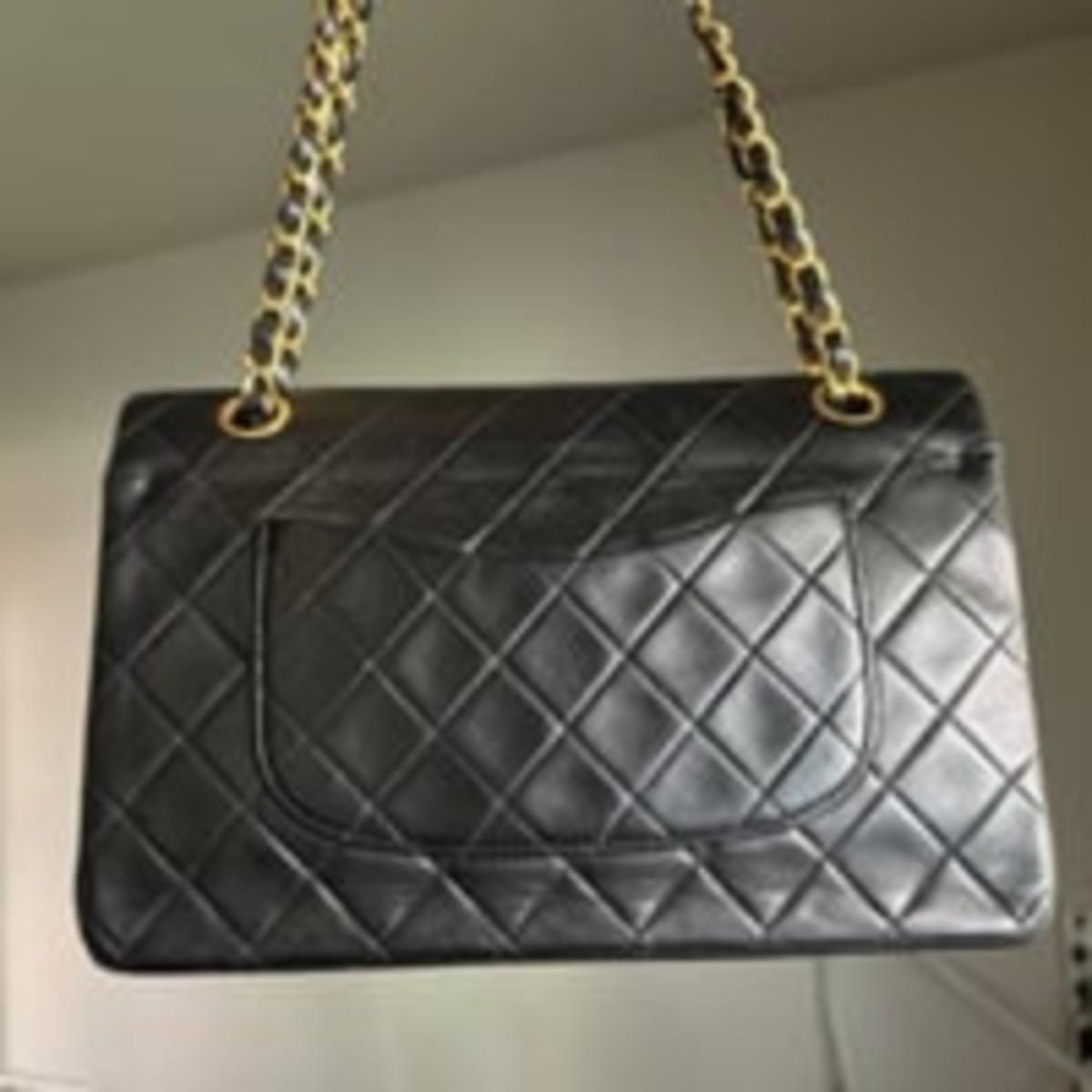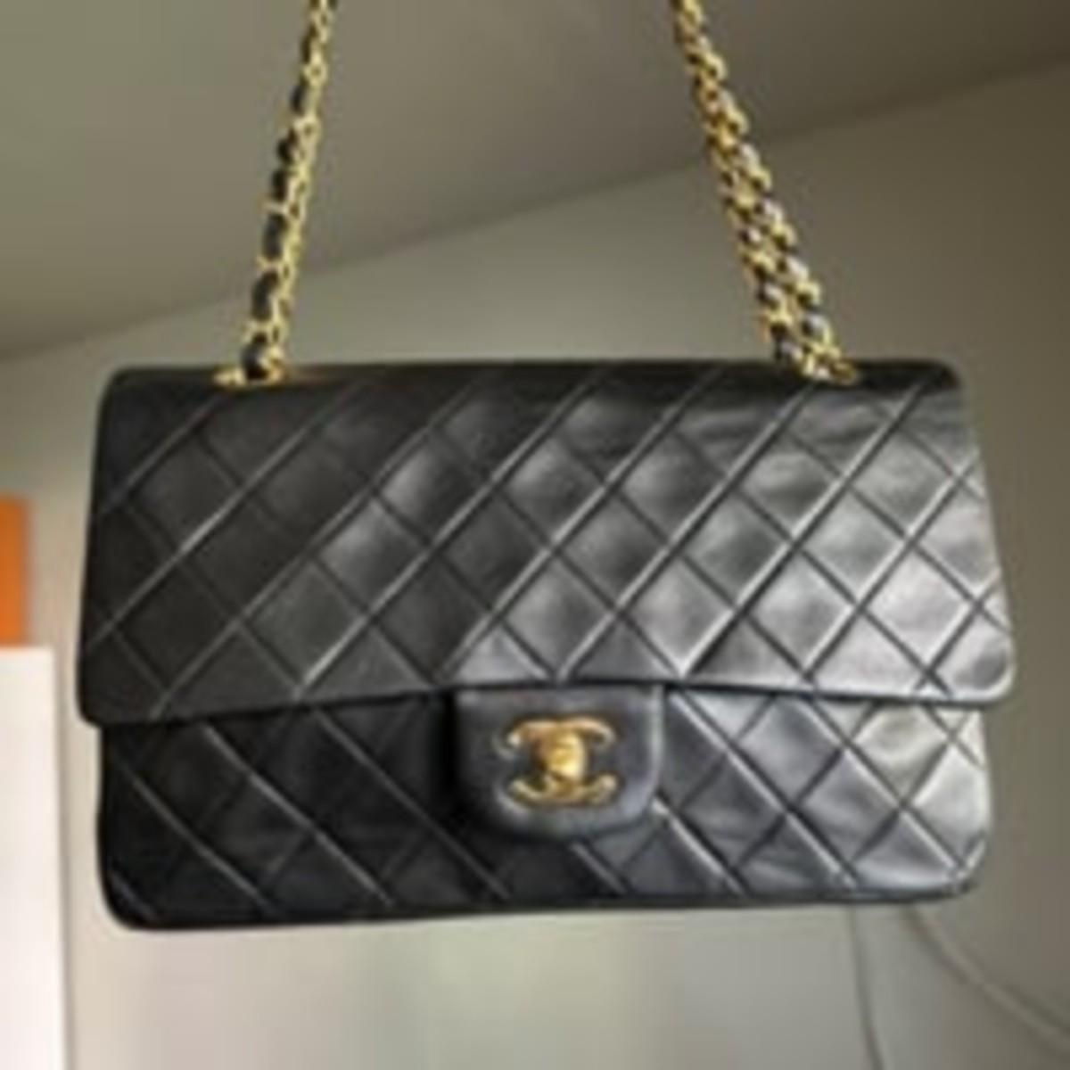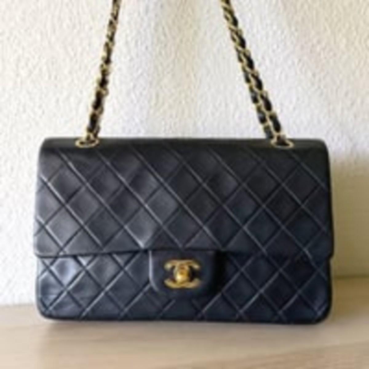 CHANEL Vintage Medium Black Lambskin Leather Classic Double Flap Bag. Gold Plated Hardware. 100% AUTHENTIC GUARANTEED! Measurements: Length - 10” Height - 6.5” Width - 2.5” Strap Drop - 17” Condition: Very Good Pre-Owned Condition. This bag is in great shape for its age. The gold plated hardware is still vibrant and shiny, the strap is in great shape, the leather is soft, and the interior is clean. There is some wrinkling to the exterior leather as shown, very light edge wear. Serial sticker is damaged. General wear and aging as to be expected with the age of the bag. Sold alone. No dust bag, box, or authenticity card.