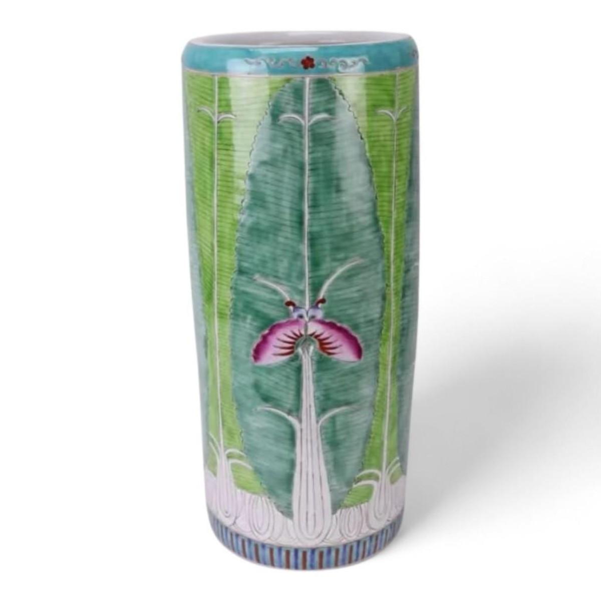 Add elegance to your entryway with this Chinese Hand-Painted Bok Choy Cabbage Ceramic Umbrella Stand. A unique, handcrafted porcelain accent, blending style and functionality for your home.<br /> Dimensions: 8.2&#34;D x 20&#34;H<br /> *Allow 8-10 weeks for delivery.*