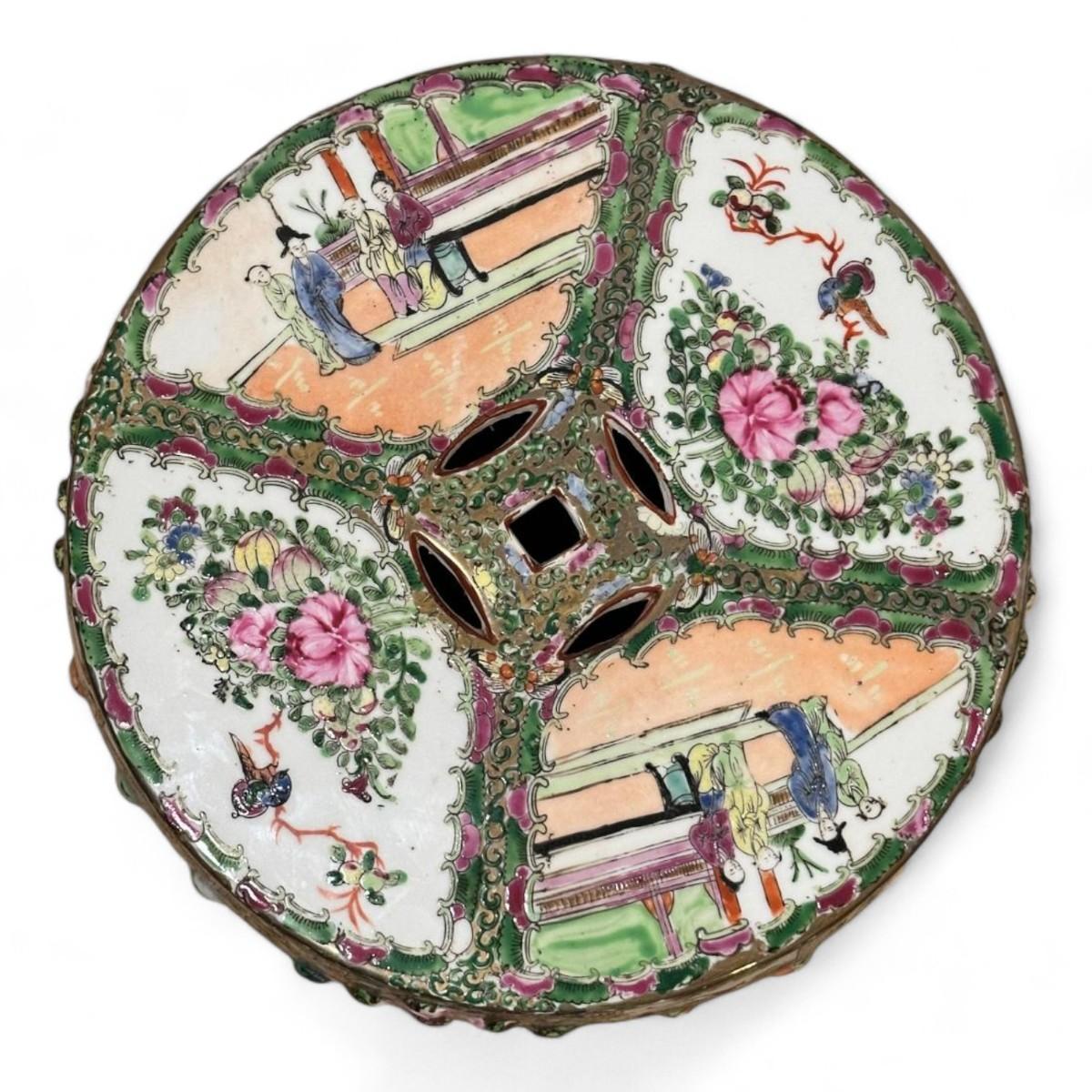 Chinoiserie Rose Medallion Garden Stool