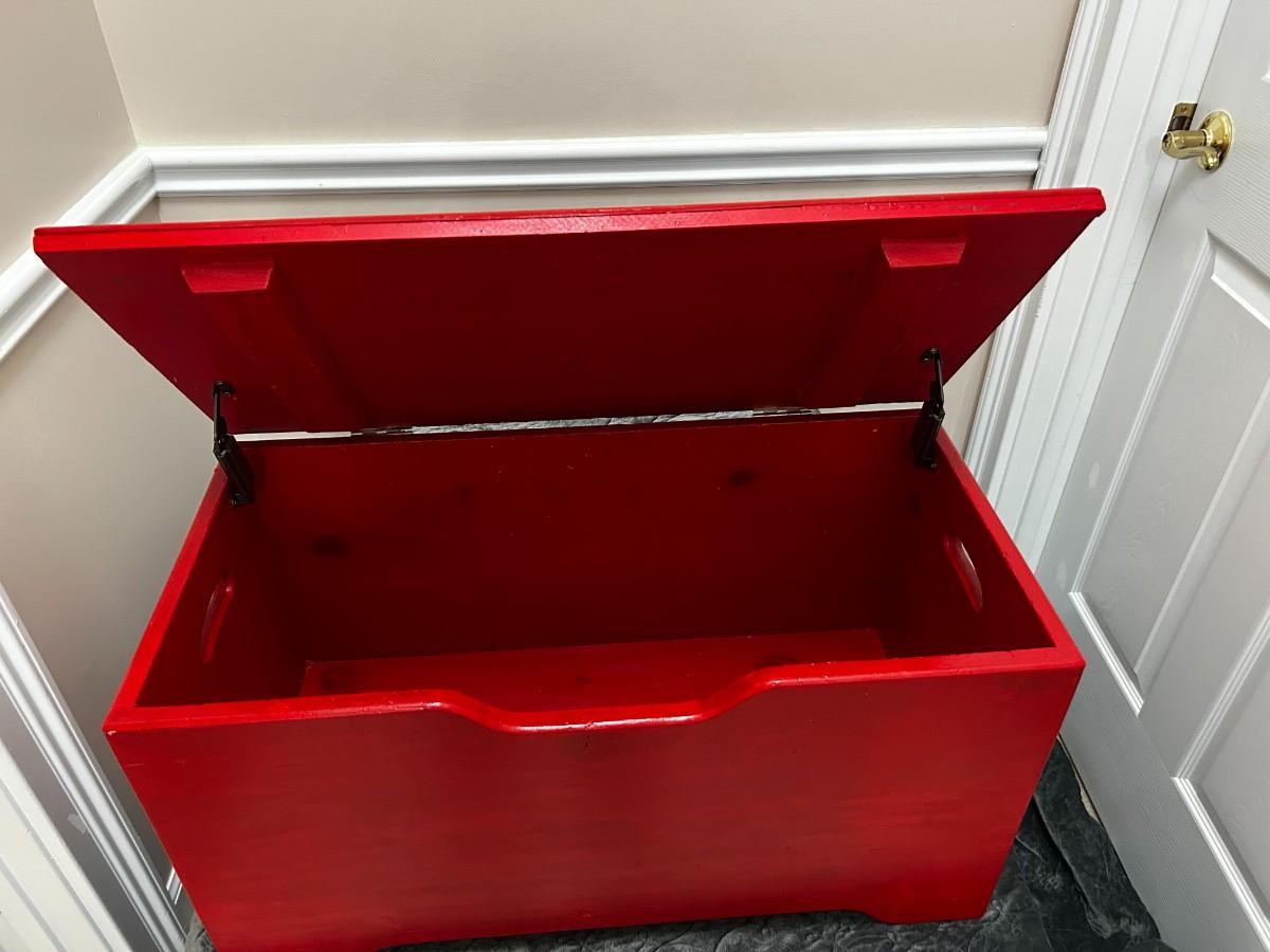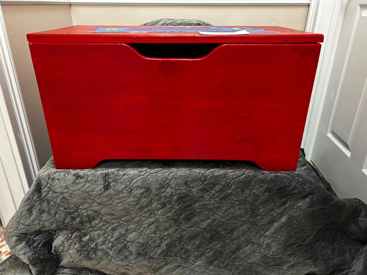 Wood Toy Box with Hinged Lid - used condition consistent with use and wear for its age