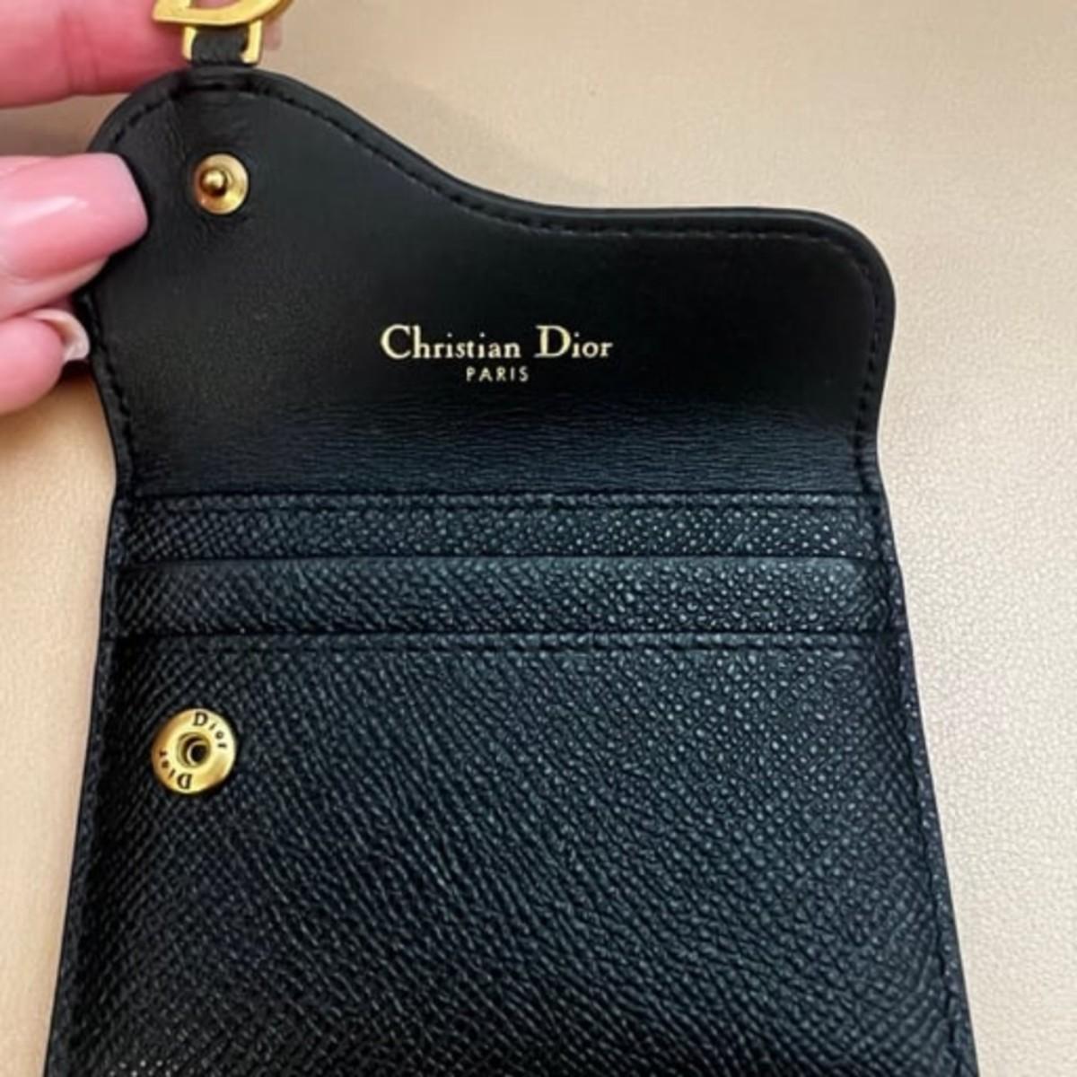 Christian Dior Black Leather Saddle Flap Card Holder Comes with original dust bag Only used once Entrupy verified Animal & Smoke Free environment