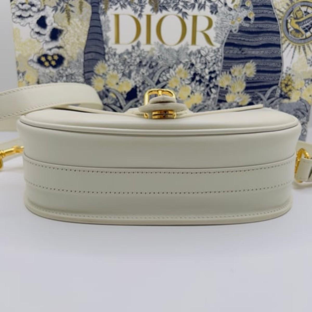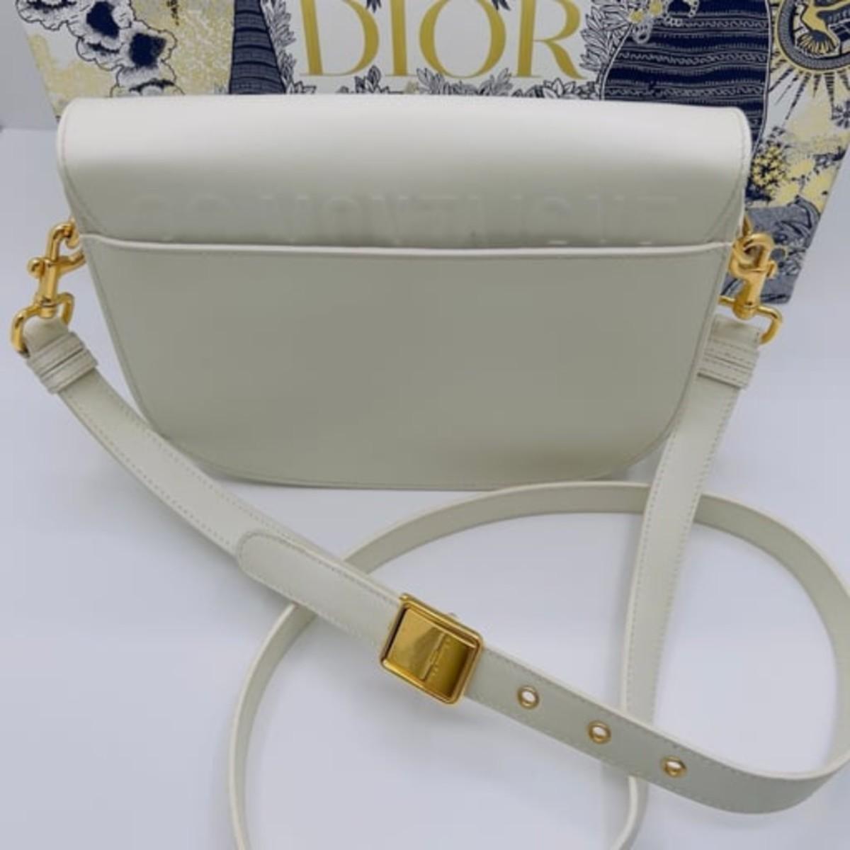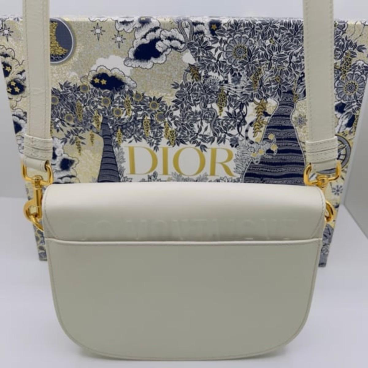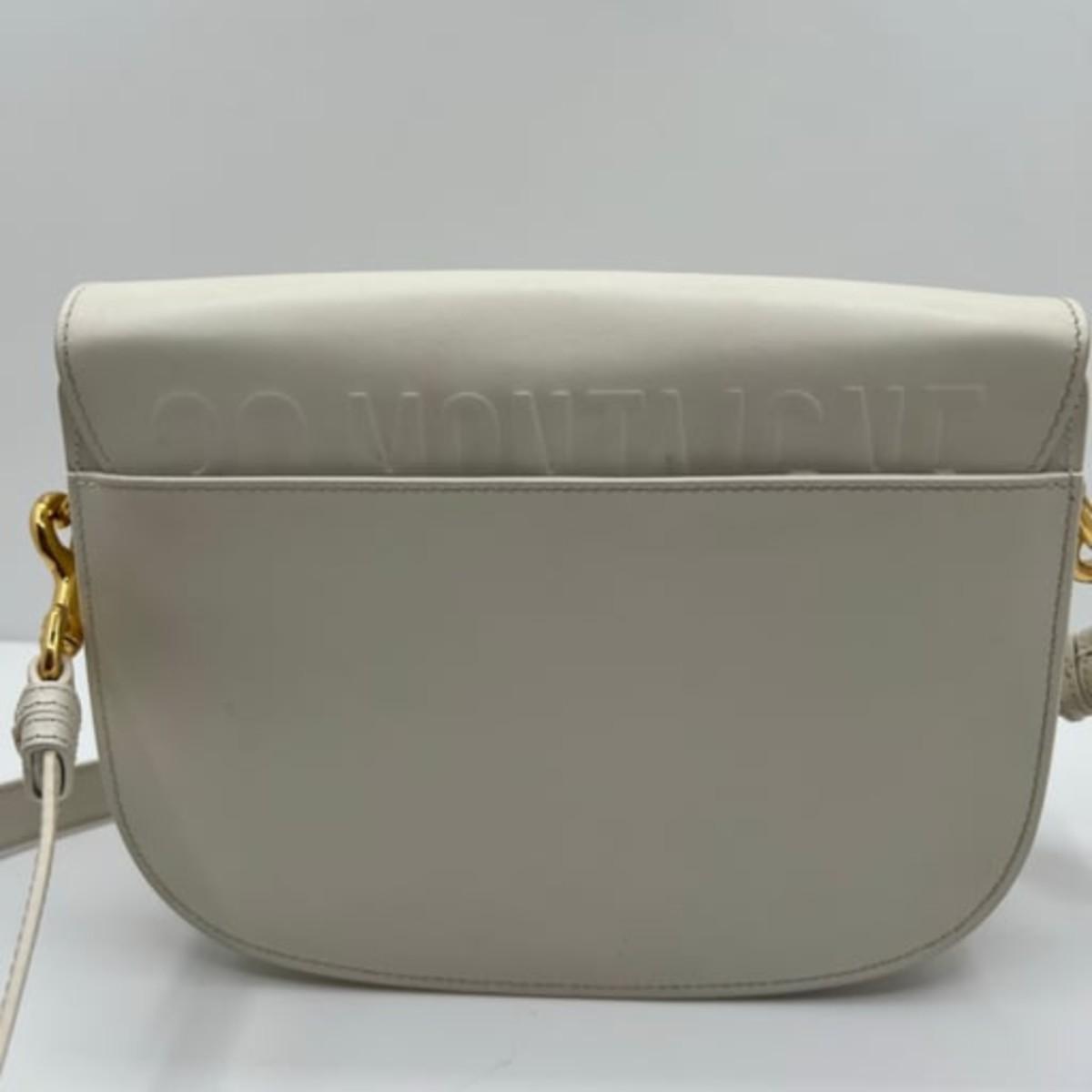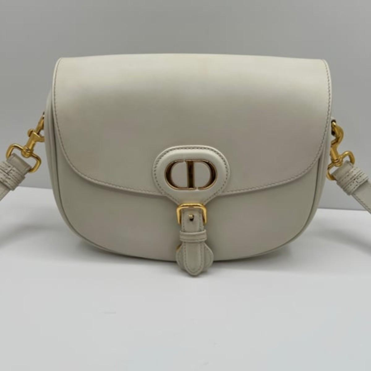 100% Authentic Christian Dior Box Calfskin Medium Bobby Flap Bag. Features: An adjustable crossbody/shoulder strap, polished gold hardware, a front flap with buckle closure, an exterior slip pocket, and the flap opens to a matching suede interior with a pocket. Bag In A Off White/Cream. Measurements: