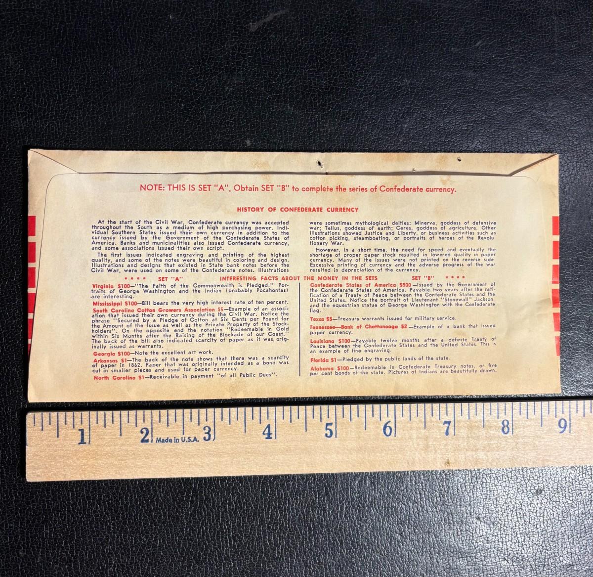 CONFEDERATE CURRENCY reproduction CSA Bank Notes Civil War era Confederacy Banknotes replicas circa 1960's for Collectors & Study
