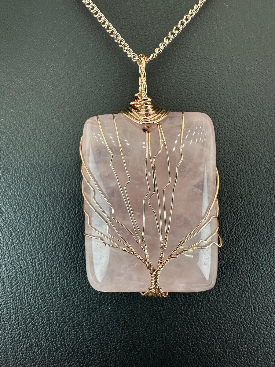 1. Copper Pink Quartz Tree Of Life Necklace Lot_x000D_