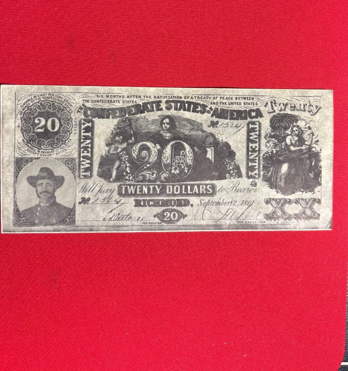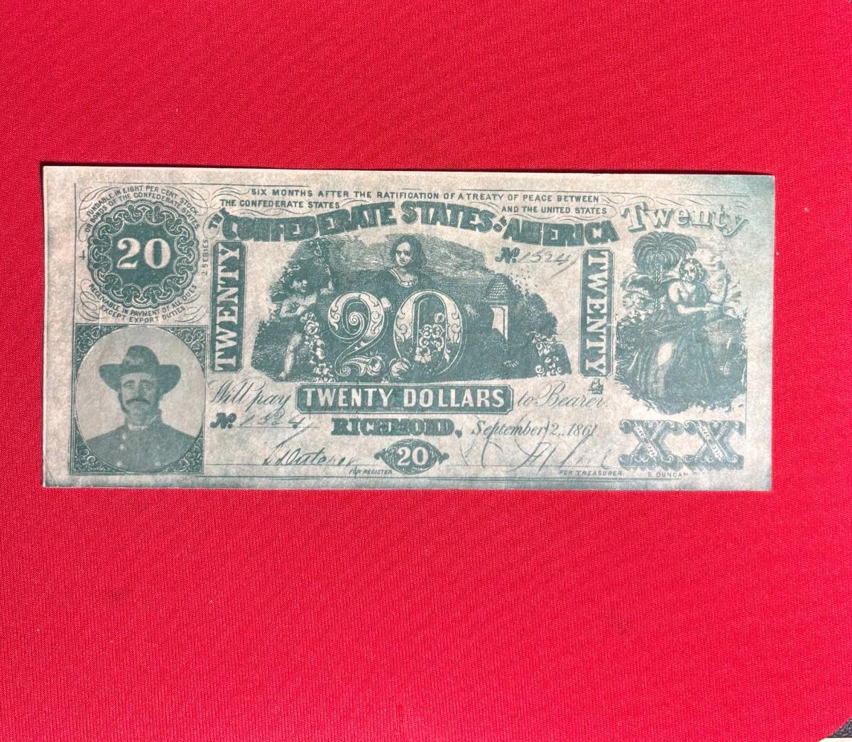 CSA $20 Banknote Currency reproduction 1861 Confederate States of America, Civil War Confederacy era Money for Collectors & Educational Purposes