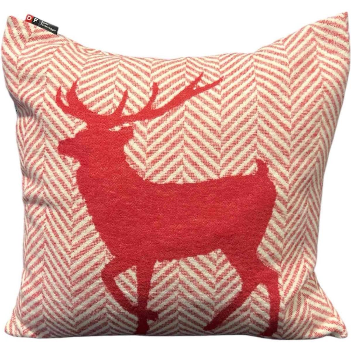 David Fussenger Luxury Austrian Decorative Accent Throw Pillow, Holiday Red And White Chevron Deer