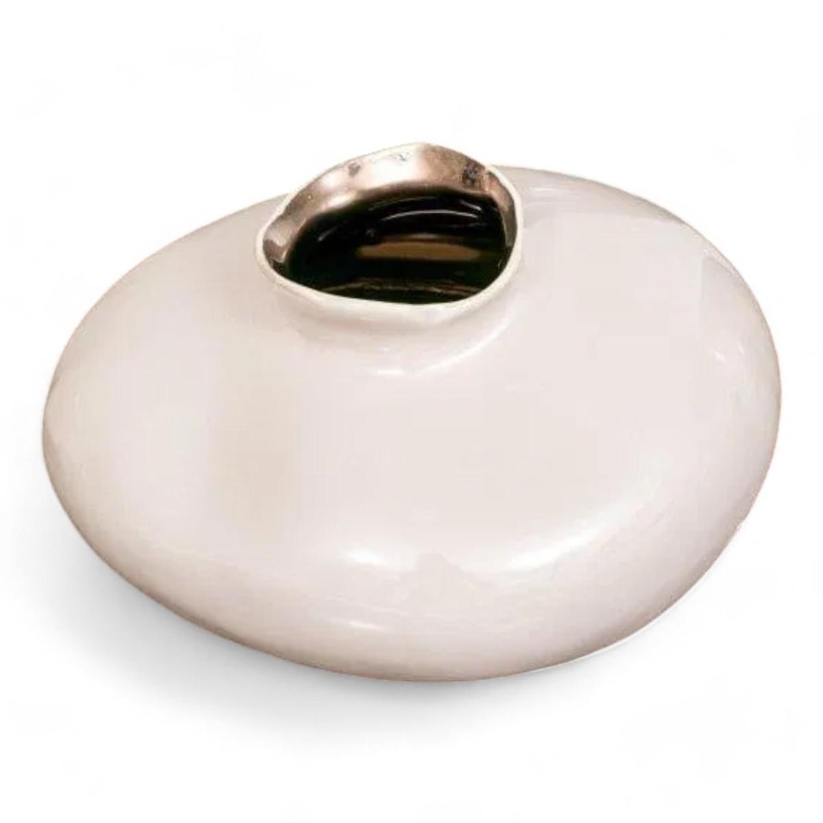Three white/ivory glazed vases of organic asymmetrical form Each vase is highly decorative and can be displayed together as a cohesive set or separated throughout a room for individual impact.