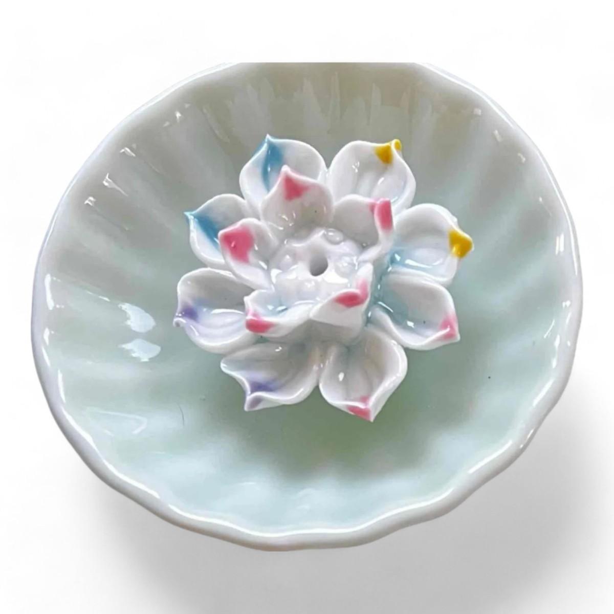 Delicate Set Of Celadon Lotus Flower Incense Burners Or Trinket Dishes