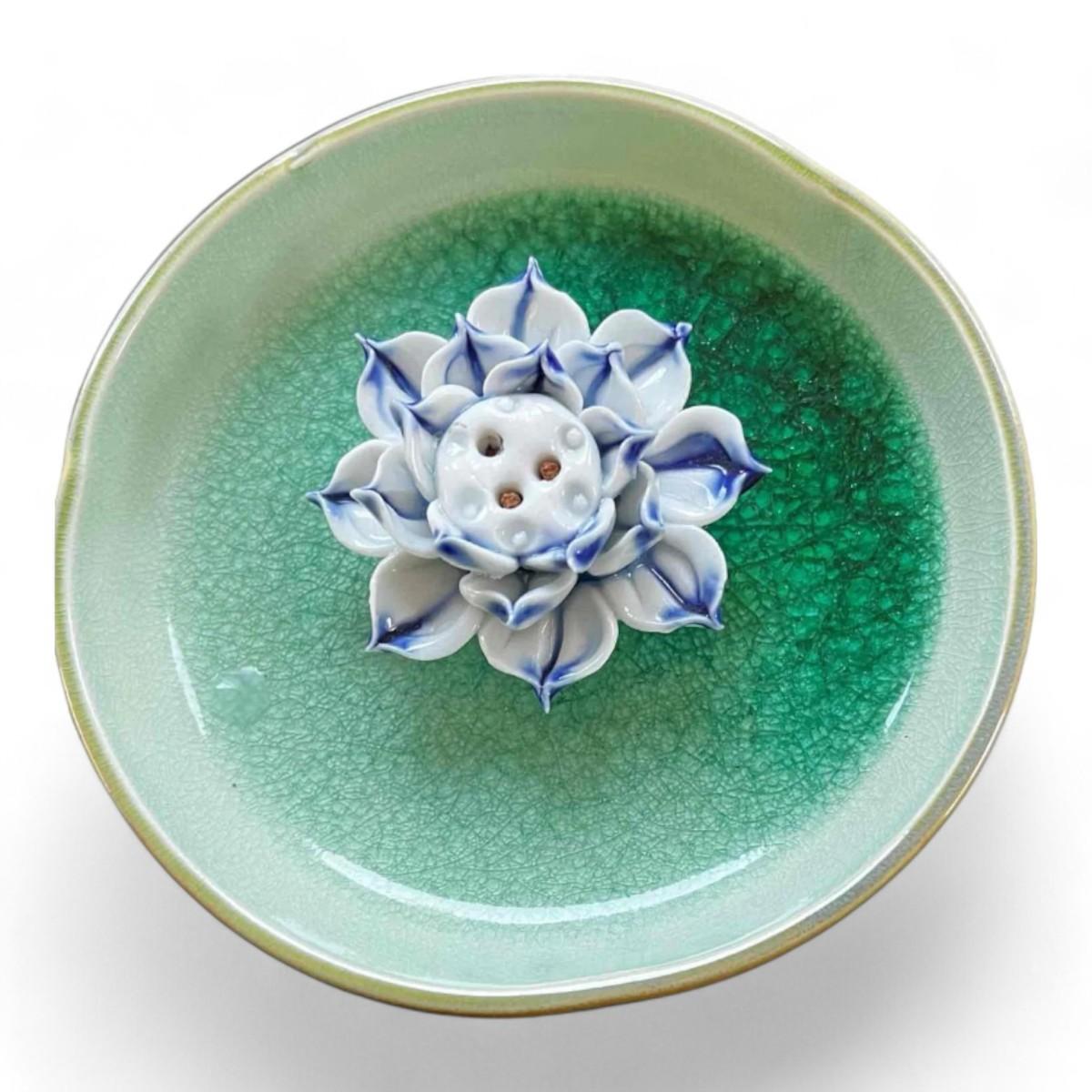 Description: Set of two (one large one small) Celadon Lotus Flower Incense Burners or Trinket dishes